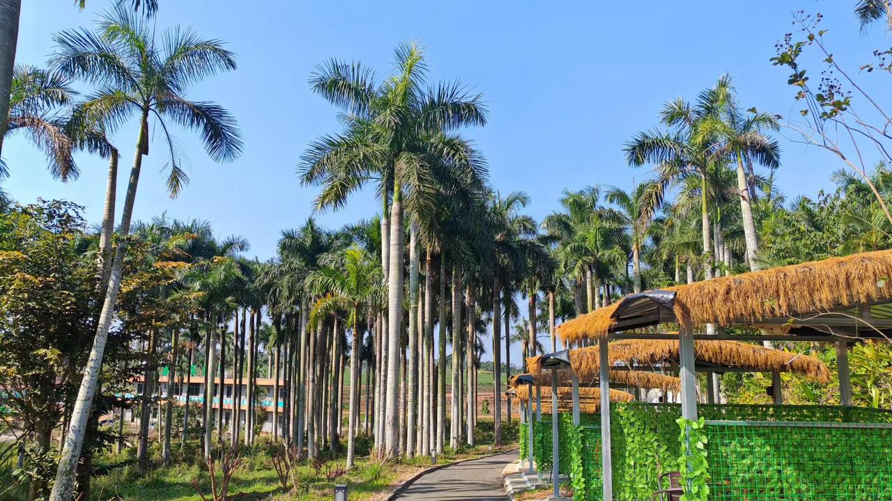 🌴 棕榈把天空举成透亮的蓝,草棚的黄在风里晃着热带的梦,小路往深处走,每步都踩着夏天的余温。 ☀️ 蓝天像块被热带植物擦亮的玻璃,草棚的茅草蘸着阳光,风过处,连空气都荡着棕榈叶的簌簌私语。 🌿 热带的风把棕榈叶吹成绿浪,草棚顶着金黄的茸毛,小路蜿蜒进蓝与绿的褶皱里,藏着整个夏天的慵懒。