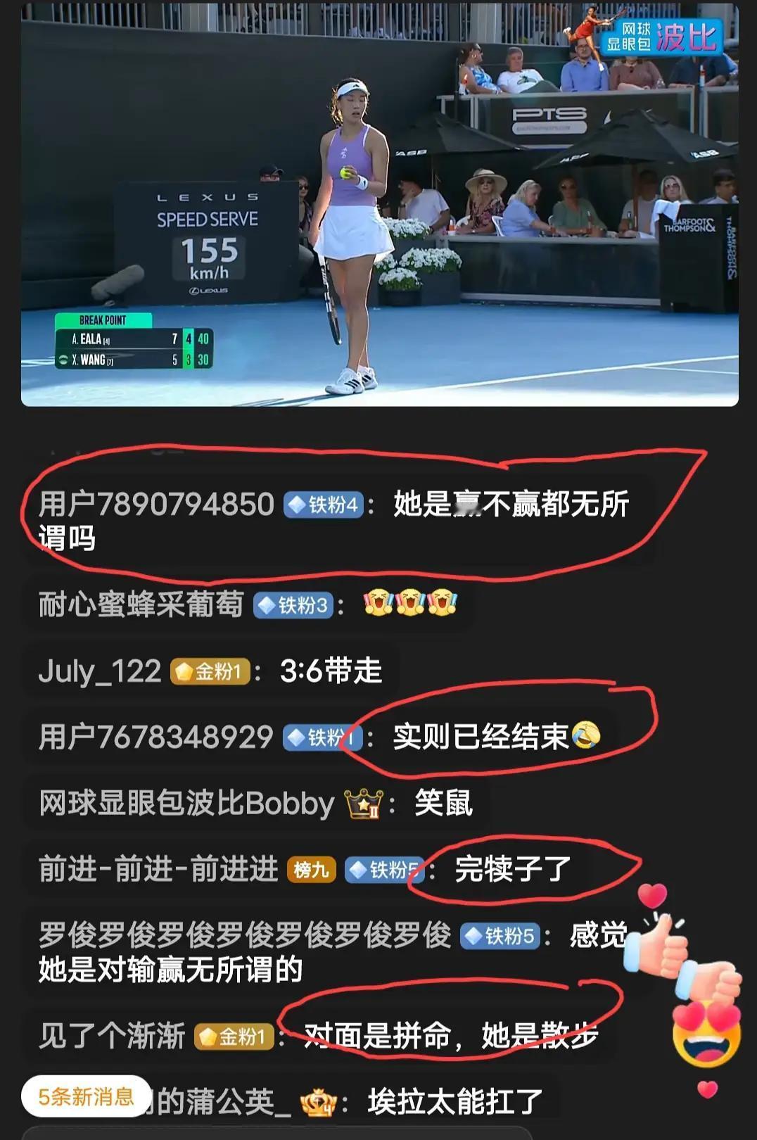 王欣瑜2:1逆转取胜伊埃拉,昂首杀入奥克兰公开赛的决赛,这也是她的第二个巡回赛单打决赛。这场比赛也让我们看到了一个不一样的王欣瑜,谁说王欣瑜不能逆转取胜的。 第二盘中段,王欣瑜3:4落后的时候,直播间评论区都是唱衰王欣瑜的声音,我都不忍直视。确实,王欣瑜过往的比赛有给大家关键时刻支棱不起来的现象出现,可也不是每次都这样。就比如上赛季的草地赛季,本赛季打丝袜泰克的比赛,她不是打的很好吗? 今天的这场大逆转,无疑会为王欣瑜增加更多的信心,以后场上遇到比分落后的局面,她知道应该怎么调整心态了! 王欣瑜,加油,争取拿到自己的第一个巡回赛单打冠军!!!