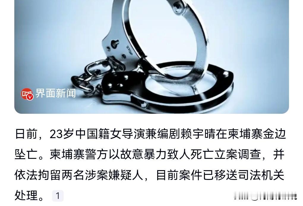 这真的是太悲剧了,这么年轻有才华的一个女导演竟然坠亡了。 近日,中国23岁导演在柬坠亡,2名嫌犯被拘。 这也太丧心病狂了吧,被谋杀了? 这到底是什么样的矛盾呢?竟然发生这种悲剧? 人性实在是太可怕了,真是让人防不胜防啊。