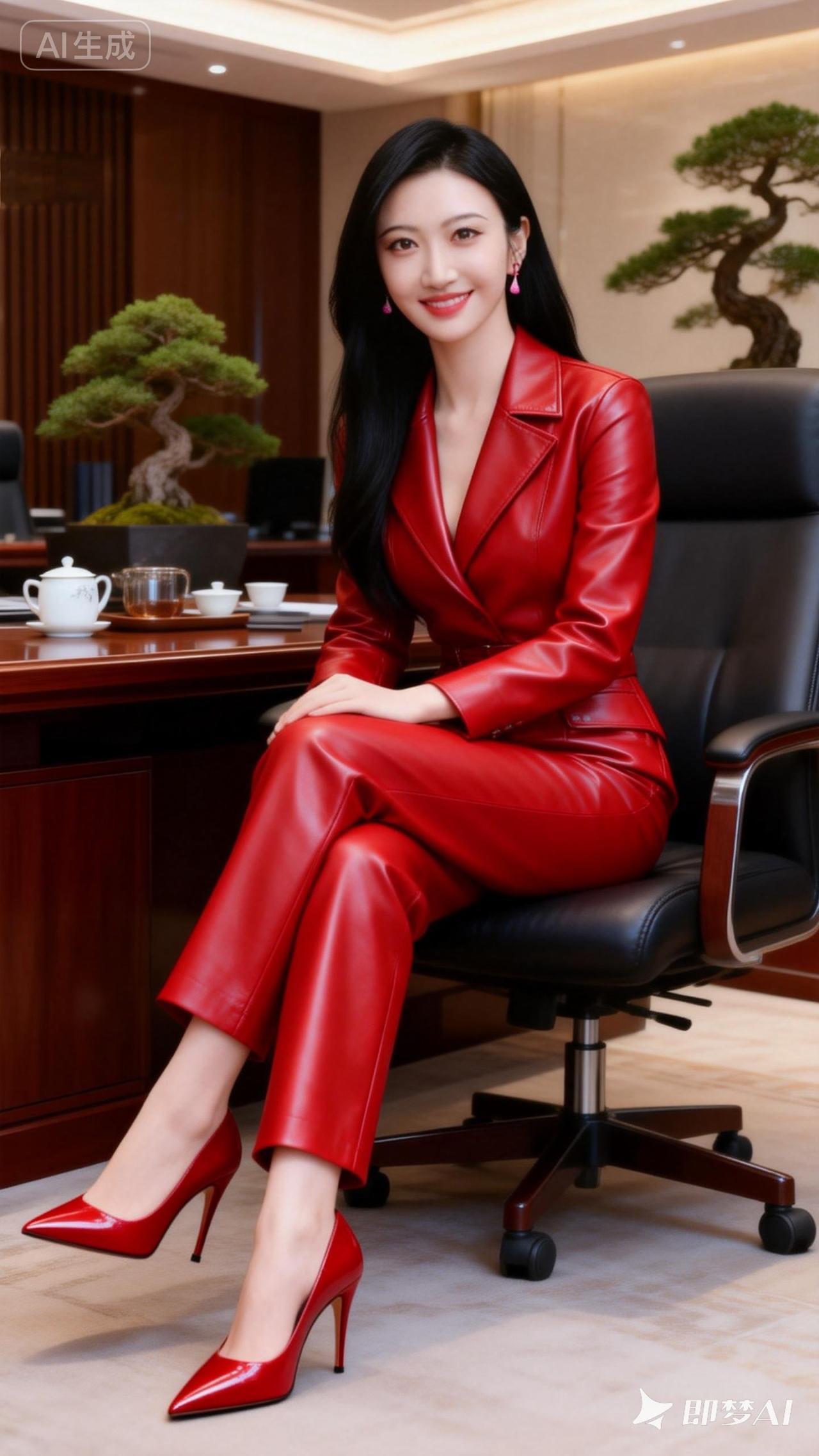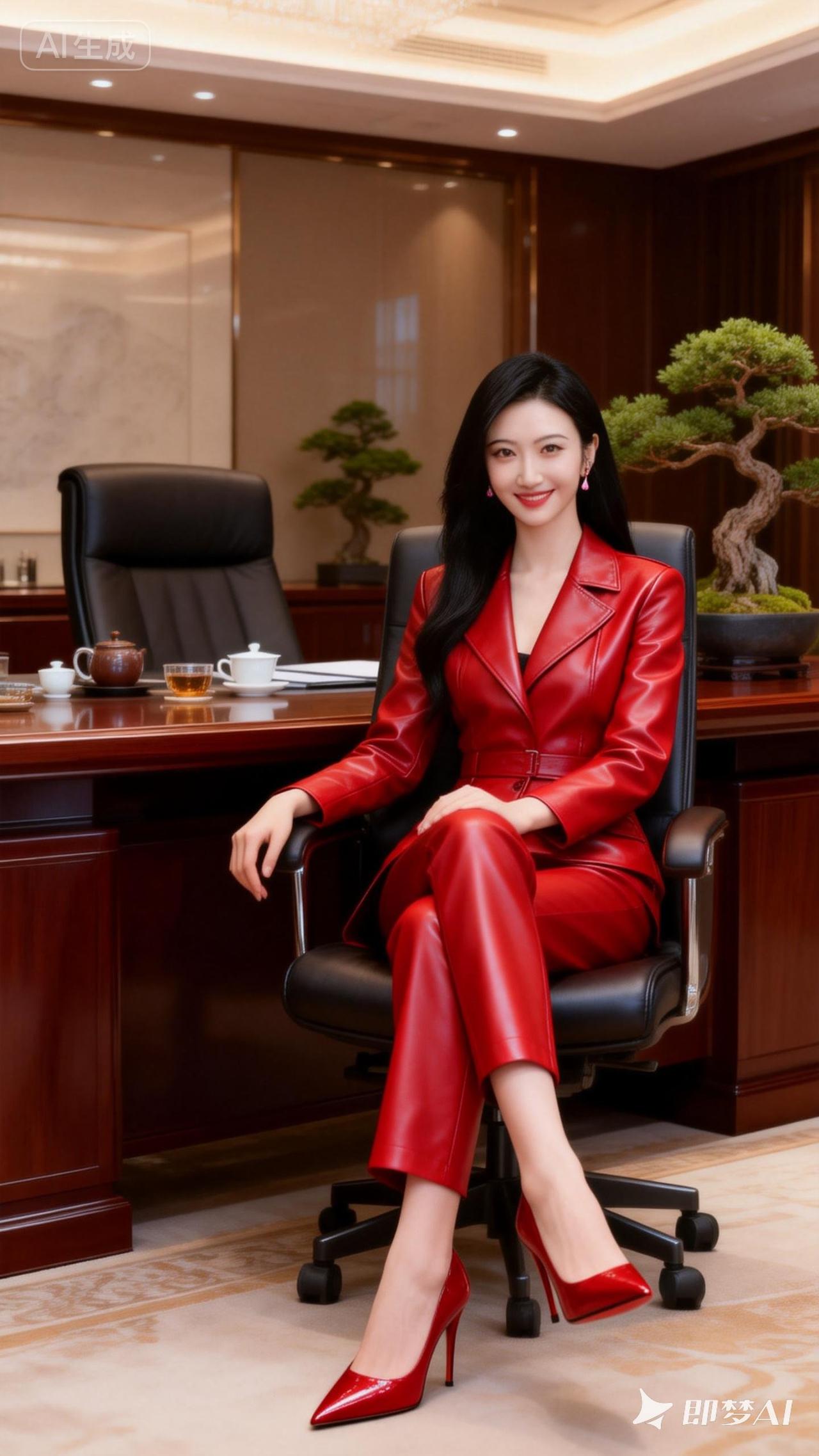 职场女强人,红皮套装,自信满满!