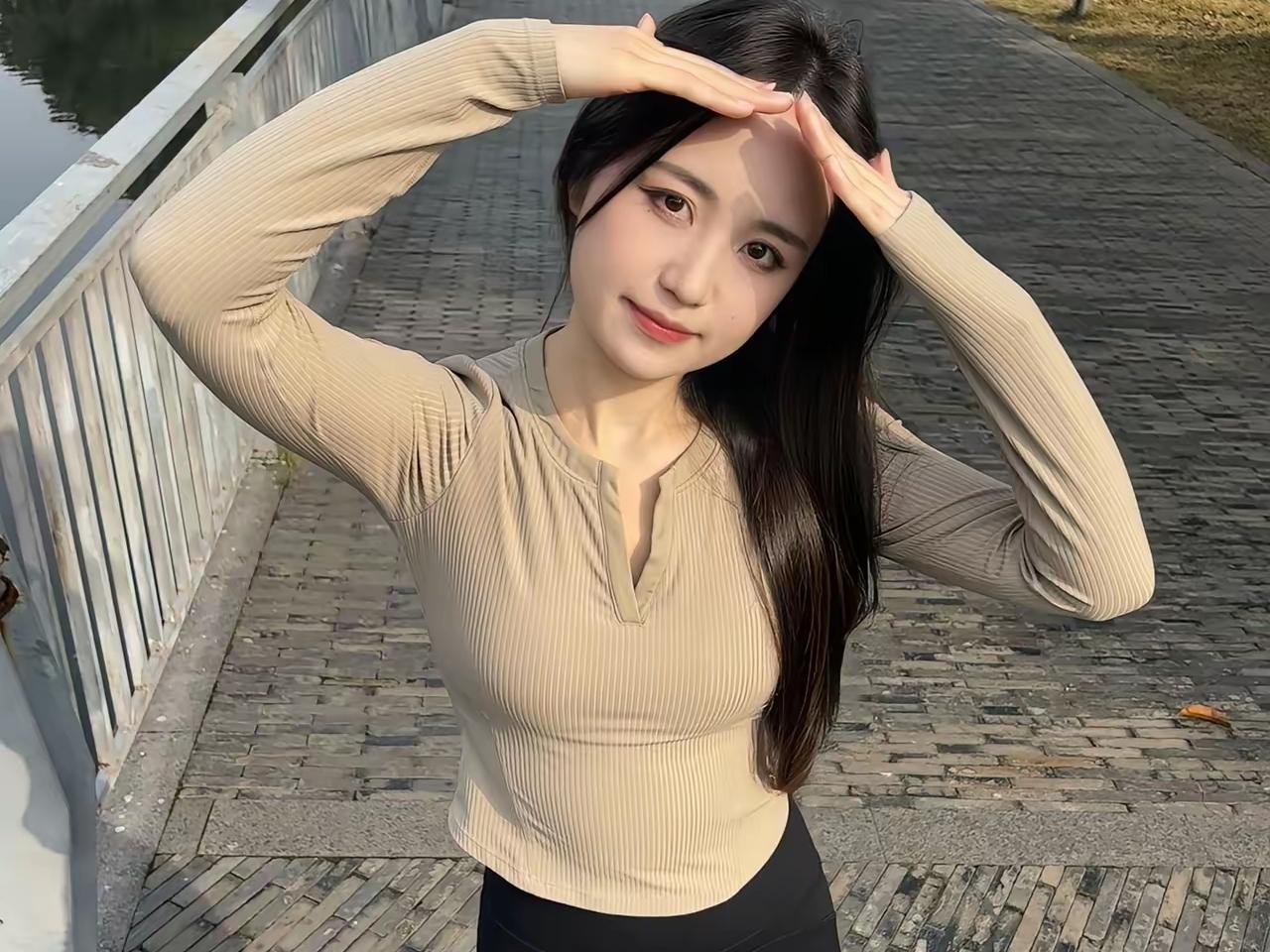 冬日步道上的小美好 午后的阳光斜斜扫过步道 砖缝里还卡着几片黄叶子 像谁随手撒的碎金片 她站在那里,卡其色的针织衫贴在身上 软乎乎的纹路,像刚晒过的棉被 黑色裤子顺着腿线往下滑 裤脚蹭着粉粉的运动鞋,带点俏皮的晃 先把双手举在头顶,比出个小小的屋檐 眼睛弯着,像盛了半勺阳光 又抬手拢了拢长发,指尖划过耳旁 风跟着凑过来,撩起几缕发丝 最后低头比了个耶,镜头从上方往下拍 能看见砖路上的落叶,还有她蜷起的指尖 湖水在旁边静静淌,栏杆泛着淡灰的光 树影把她的影子剪得碎碎的 却又把这份轻松的甜,揉得很完整 就像冬日里突然撞见的一块棉花糖 不齁人,只觉得暖乎乎的 把冷冷的风,都挡在了身后