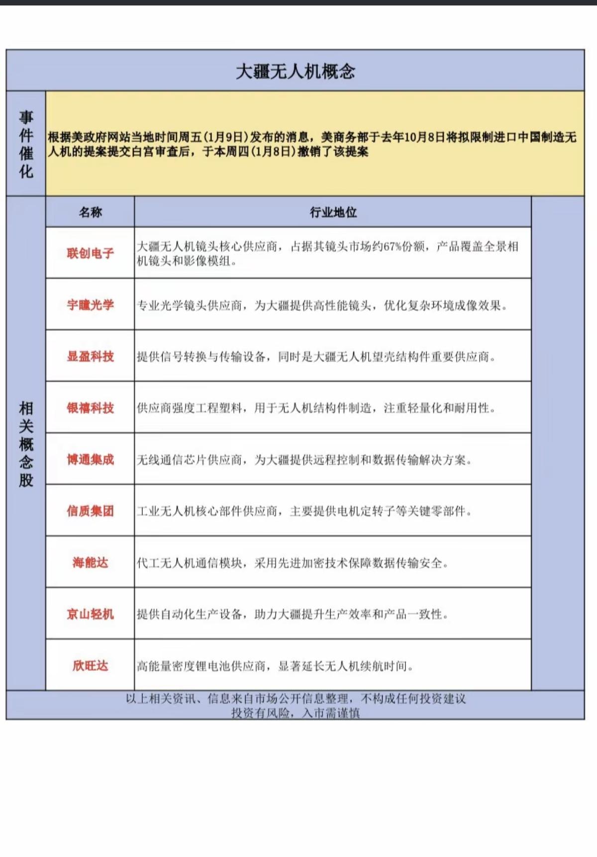 美国商务部:撤销无人机管制清单! 相关影响力受益股整理: 1.工业无人机 2.零部件 3.军工电子