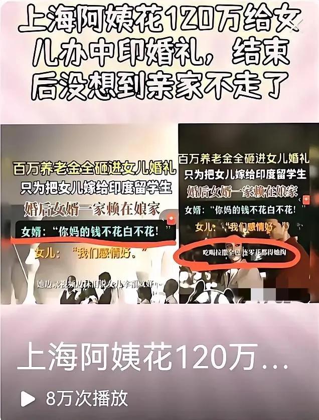 这阿姨也太实诚了!120万养老金说砸就砸,结果呢?亲家四口赖着不走,签证都过期了还赖在婚房,这哪是结婚啊,分明是请了群“活菩萨”回来供着!天天泡厨房忙活,哪是享清福,简直是当免费保姆还得倒贴钱!网传那些“嫁给印度人好处多”的谣言可别信啦,跨国婚姻真得擦亮眼,养老钱可是保命钱,乱砸出去连个水漂都听不着,到时候哭都没地儿哭!听姐一句劝,找对象先看人品再谈钱,不然真成“引狼入室”啦!