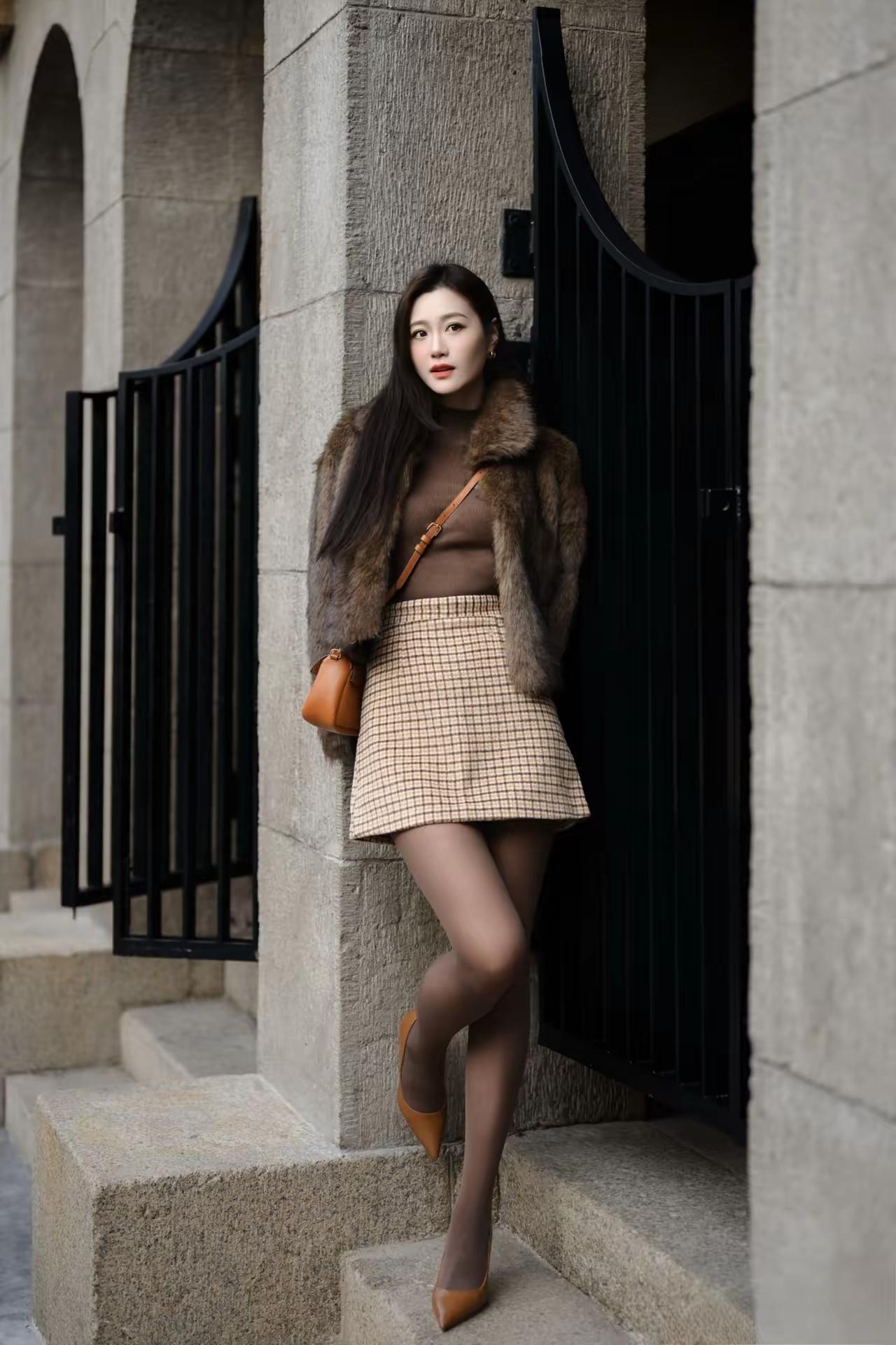 冬季美女时尚穿搭街拍穿搭性感高雅气质美女高跟丝袜