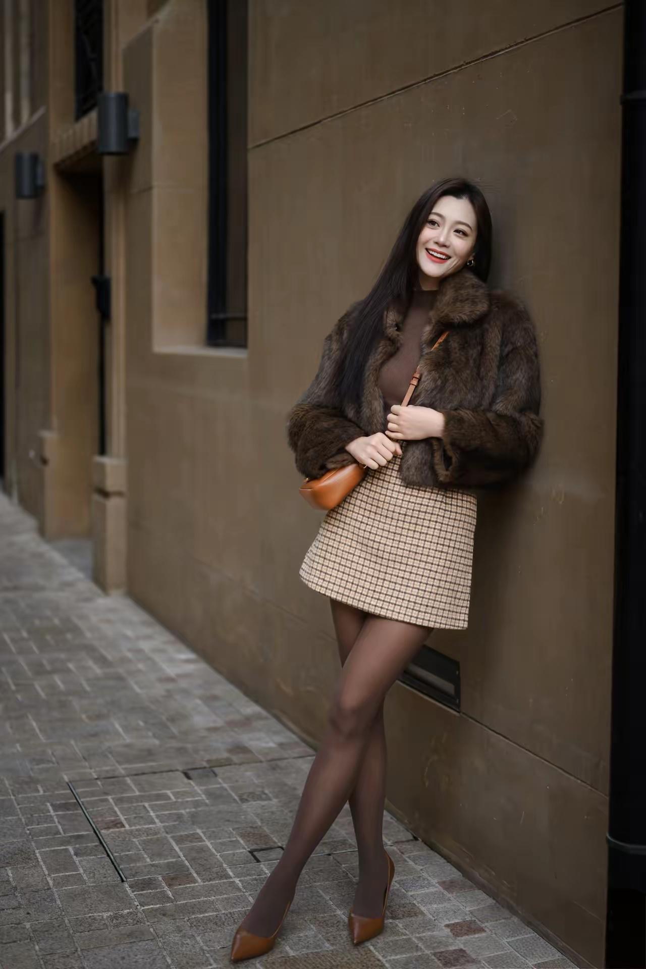 冬季美女时尚穿搭街拍 穿搭 性感 高雅气质美女 高跟丝袜