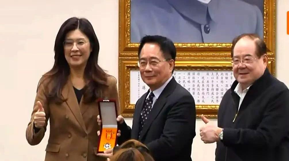 主动迎上去,一把就把手给握紧了。 就这一个动作,我跟你说,教科书级别的。 你以为发个奖章就完了?那可是国民党最高的“实践一等奖章”,面子给到顶了。但真正厉害的,从来不是那块铁。 是她,一个主席,亲自、主动地朝他走过去。 那个身体前倾的姿态, 那个没有丝毫犹豫的步伐, 那个紧紧握住不松开的手… 这叫什么? 这就叫“我给你台阶,而且是亲自给你搭好、扶着你下来”。 过去那些恩怨啊、心结啊、谁对谁错啊,在这一握里,瞬间就虚了,就过去了。 蔡正元心里能不明白吗?他拿到的不只是个荣誉,更是一种“我懂你,我看重你,咱们往前看”的信号。 这才是真正会当领导的人。 底下人再怎么有情绪、有本事,最怕的不是被骂,而是被无视,是被晾着。 郑丽文这一手,既收了心,又立了威。告诉所有人:格局打开,跟着我干,过去的坎儿,我亲自帮你填平。 服了,真的。