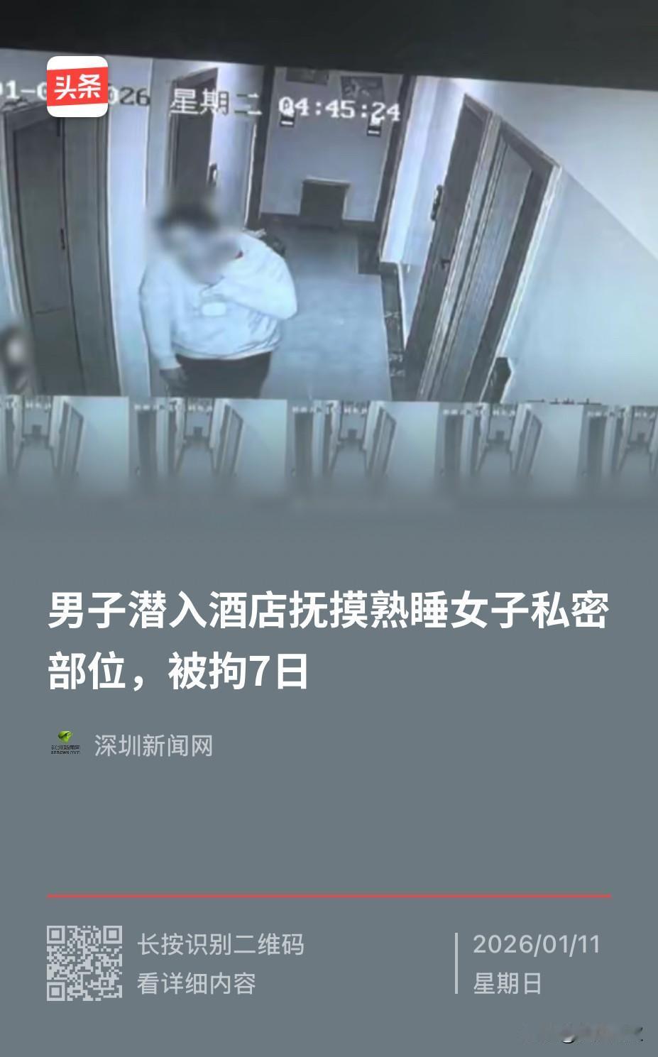 云南泸水,一女子入住酒店后便入睡了,可是睡到凌晨时,女子隐约发现有一双冰冷的手在触碰自己的身体,女子惊醒后,这名偷偷潜入房间的男子随即便跑出了房间,报警后,警方将男子抓获,原来这名男子是隔壁的客人,最终,男子被处以行政拘留7日,网友对此表示,处罚的太轻了。 据悉,刘女士(化名)入住了当地一家酒店休息,因为太累所以早早就入睡了,睡到凌晨四点左右,刘女士隐隐约约感觉有双手伸进了被窝,似乎是在触碰自己隐私部位。 惊醒后,刘女士果然看到一个黑影跑出了房间,定了定神后,刘女士即可报了警。 很快,民警通过监控发现,是刘女士隔壁房间的男子籽某偷偷潜入进来,对刘女士实施的不法行为,最终,籽某被处以行政拘留7日的处罚。 事发后,网友则纷纷表示,才行政拘留7天,最起码按照犯罪处理,毕竟是触碰的隐私部位,而且还是进入的房间触碰的,这和在公共场合不同,这种危险性更高。 还有网友说,这个男的怎么进去的房间,女的没锁门还是这个男的有门禁,真的是百思不得其解。 也有网友说,就是不承认说走错了房间,难道也要被处罚吗? 其实,行政处罚和刑事处罚,仅仅是情节轻重的问题,即同样的事情,如果情节被认定为轻微,那么就是行政处罚,如果情节相对较重,接受的就是刑事处罚了。 比如偷东西,偷三五百和偷三五千,就是行政处罚和刑事处罚的问题,而本案中,籽某触碰受害人隐私部位,其实已经涉嫌刑事了。 但是,由于受害人是在熟睡中,加上房间也没有监控予以佐证,只有嫌疑人自己的供述和受害人断断续续的回忆,因此,如果此时以刑事案件立案,那么,大概率在检察院阶段案件就会停止,这与案件的证据有关,并不是说与嫌疑人的行为有关。 假如受害人能够回忆起来,嫌疑人对此是怎么触碰的,再或者是监控能够予以佐证,而不是监控只是拍摄到了嫌疑人进入的画面,在这种情况下,是能够按照强制猥亵罪予以处罚的。 由于证据相对不扎实,因此,只能按照治安管理处罚法的规定,对其处以行政处罚了,按照其规定,猥亵他人的,处5日以上10日以下拘留;猥亵精神病人、智力残疾人、不满14周岁的人或者有其他严重情节的,处10日以上15日以下拘留的处罚。 其实,嫌疑人之所以能够进入隔壁客房,大概率是受害人没有将门关严有关,入住酒店时,即便再累再困,也要在临睡之前,查看房门是否关好,安全锁是否落锁,毕竟,自己的人身和财产安全,才是重中之重的。 对此,你对本案有什么看法? —————————— 关注我,带你评析法律热点,关注冷暖人生。 文章原创,抄袭必究