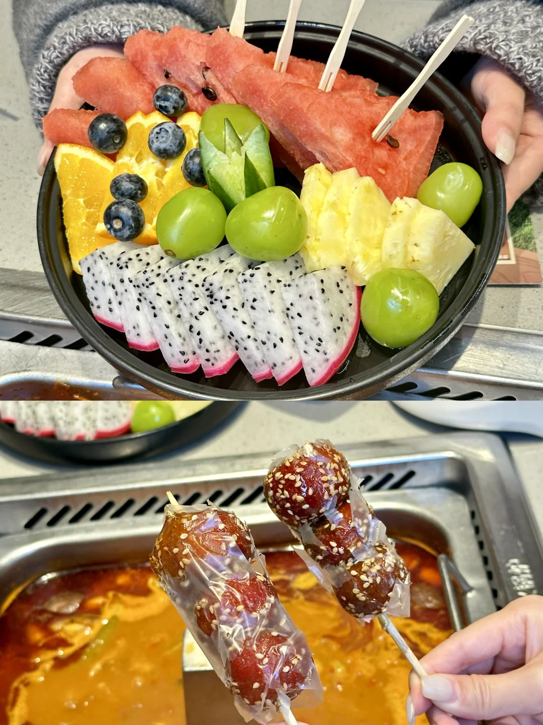 🌈今天的锅底是新疆番茄➕糟辣椒!番茄的清甜中和了三重辣椒的鲜香,让不太能吃辣的我也吃的很满足!而且辣度是可以选的,很人性化,我选了普通,还有中辣和贵州辣