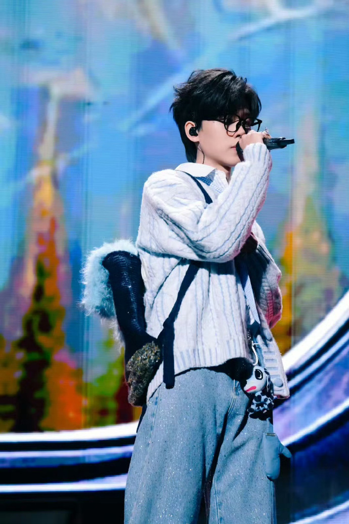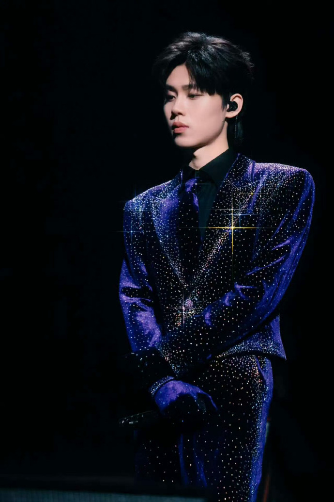谁懂王翊恩的反差感!紫色丝绒星星西装是月光下告白的王子,黑框眼镜配毛绒书包秒变懵懂男大,两面都戳中审美,小孩才做选择,我全都要!