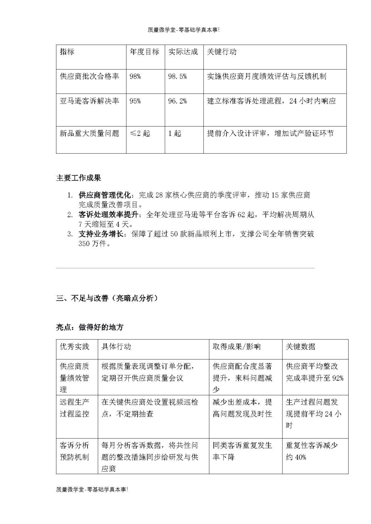 品质部年终述职报告(电商)每天学一点进步多一点深度思考每天学习进步一点点每