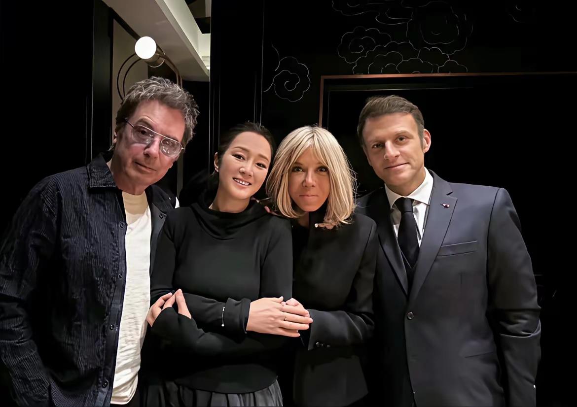 巩俐和马克龙夫人布丽吉特双手紧握,身体相拥,很亲密。希望巩俐搭建起中法友谊的桥梁。