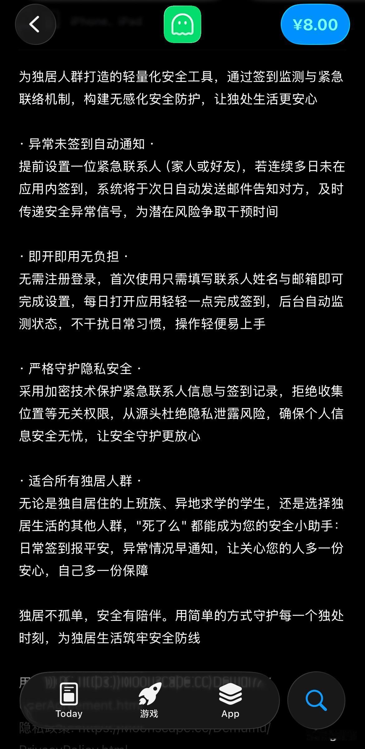 “死了么”app为什么能爆火? 是刚需还是现象级? 是孤独人的希望之火,是老龄化社会的必然。 暂且不说开发成本仅仅1000元,估值目前1000万,就凭借这灵敏的商业嗅觉和“知行合一”的本事,硬是没有几个人能及的。 这个APP具体是做什么的? 看app的介绍,简单操作就是让孤寡老人和单身的人天天签到,两天不签到就给紧急联系人打电话。