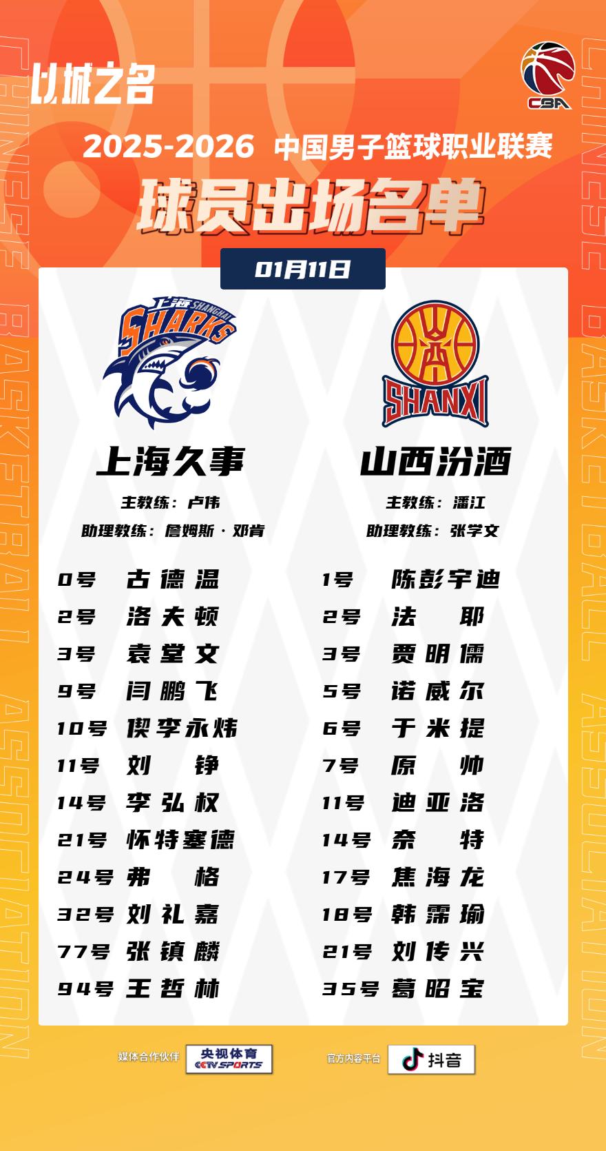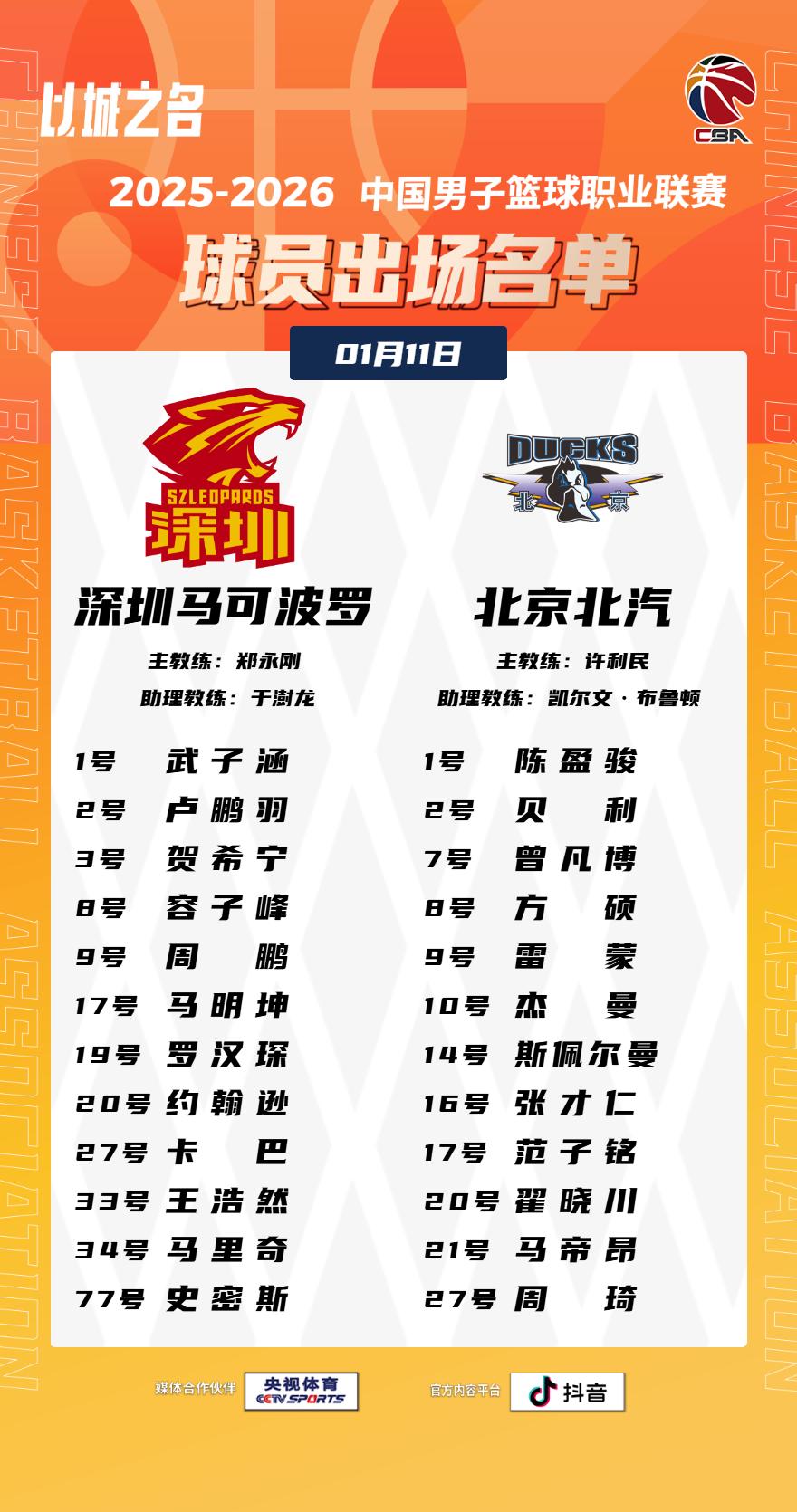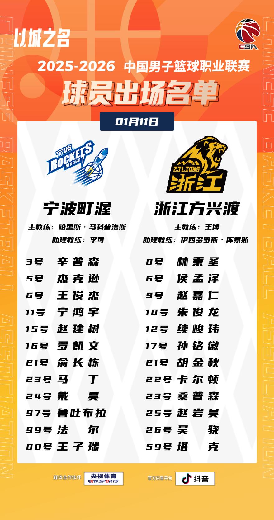 【大名单出炉】2025-2026赛季CBA联赛常规赛第十三轮今晚继续进行,其中6场比赛将在19:35同时跳球,新疆伊力特vs江苏肯帝亚的比赛将在20:00跳球。敬请期待!CBA联赛 以城之名