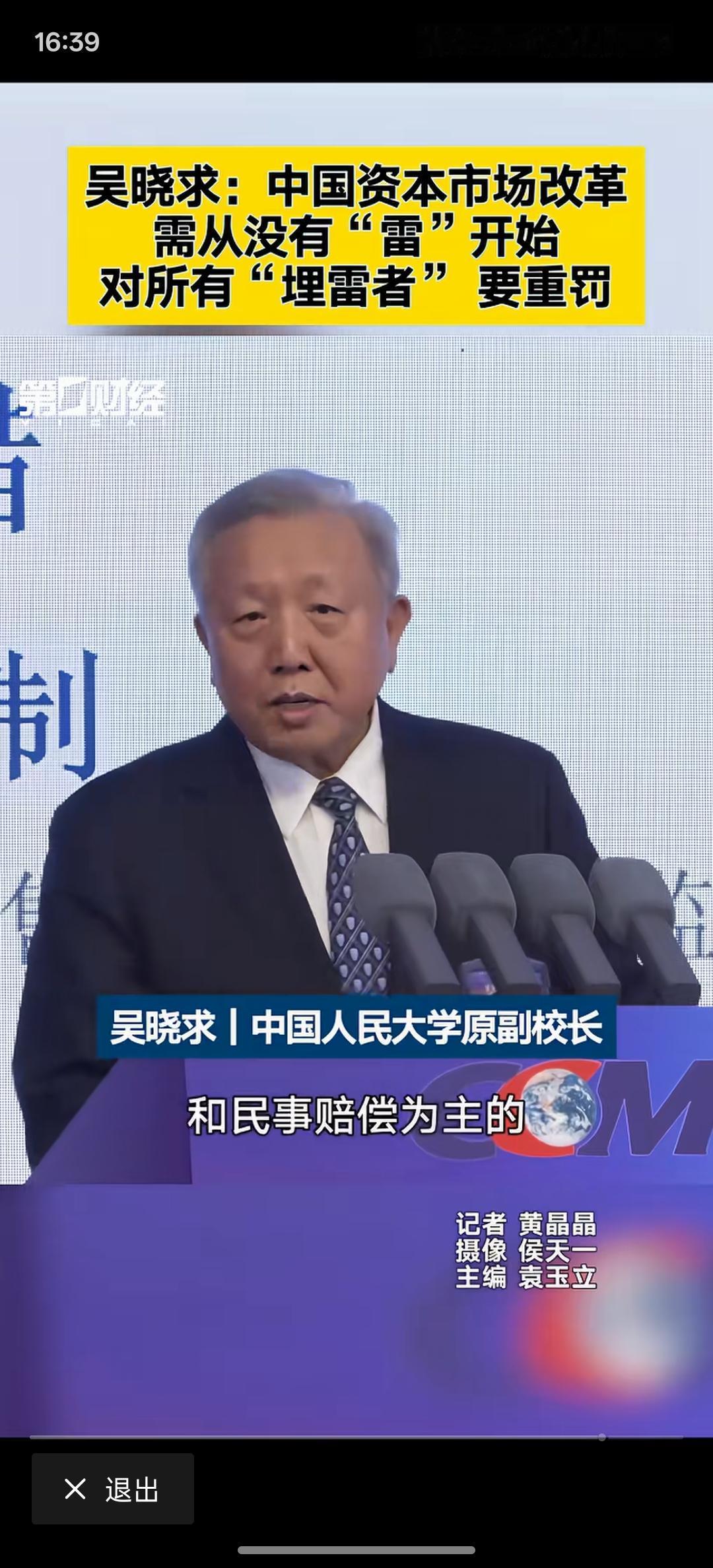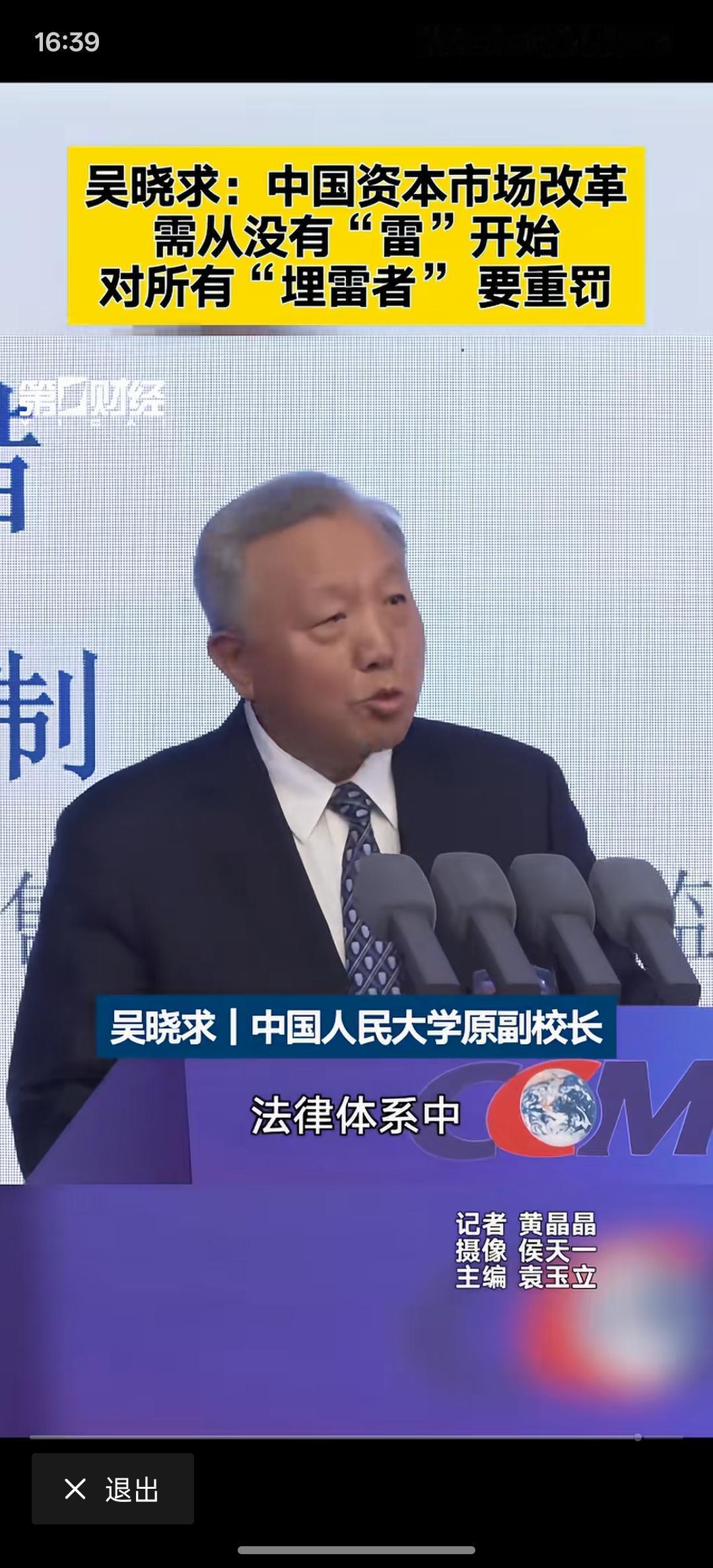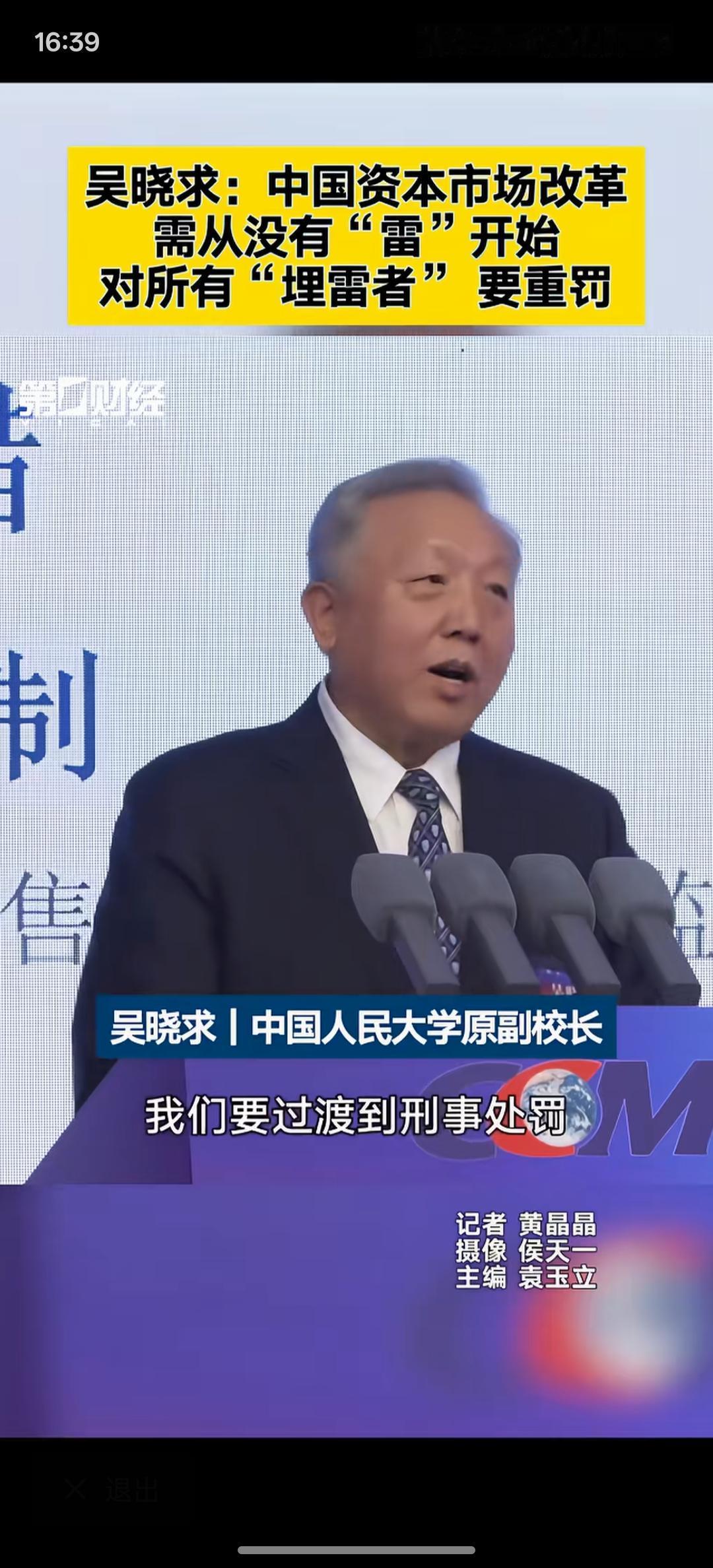 吴晓求:资本市场改革须用重典 应对“埋雷者”追究刑责、民事赔偿,这是要下大力度整改资本市场,要让资本市场形成长期稳定发展!一旦追究刑事责任甚至民事赔偿,这些造假的埋雷的就会有所收敛!处罚力度大于造假利润,他必然就不敢踏入这样的冒险步伐!对资本市场要加大惩罚力度!才能让资本市场健康发展!
