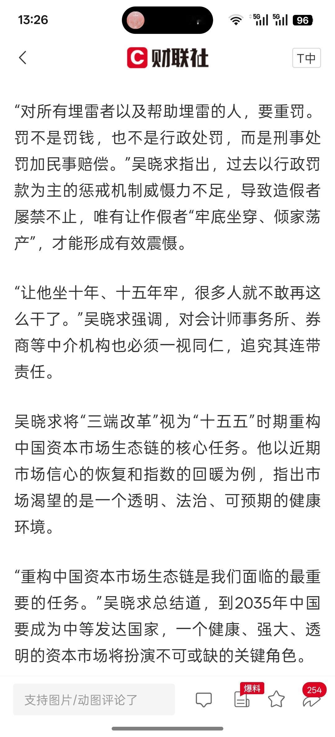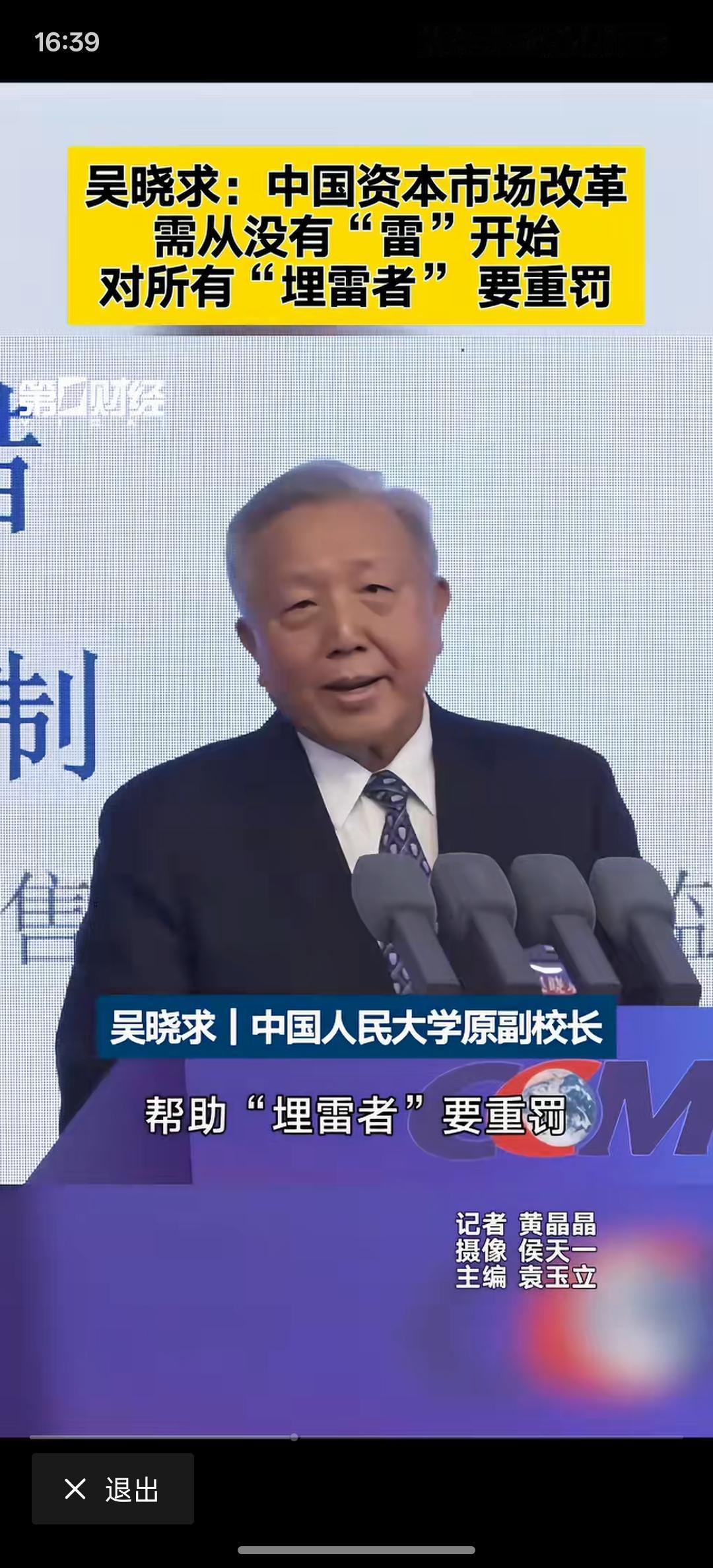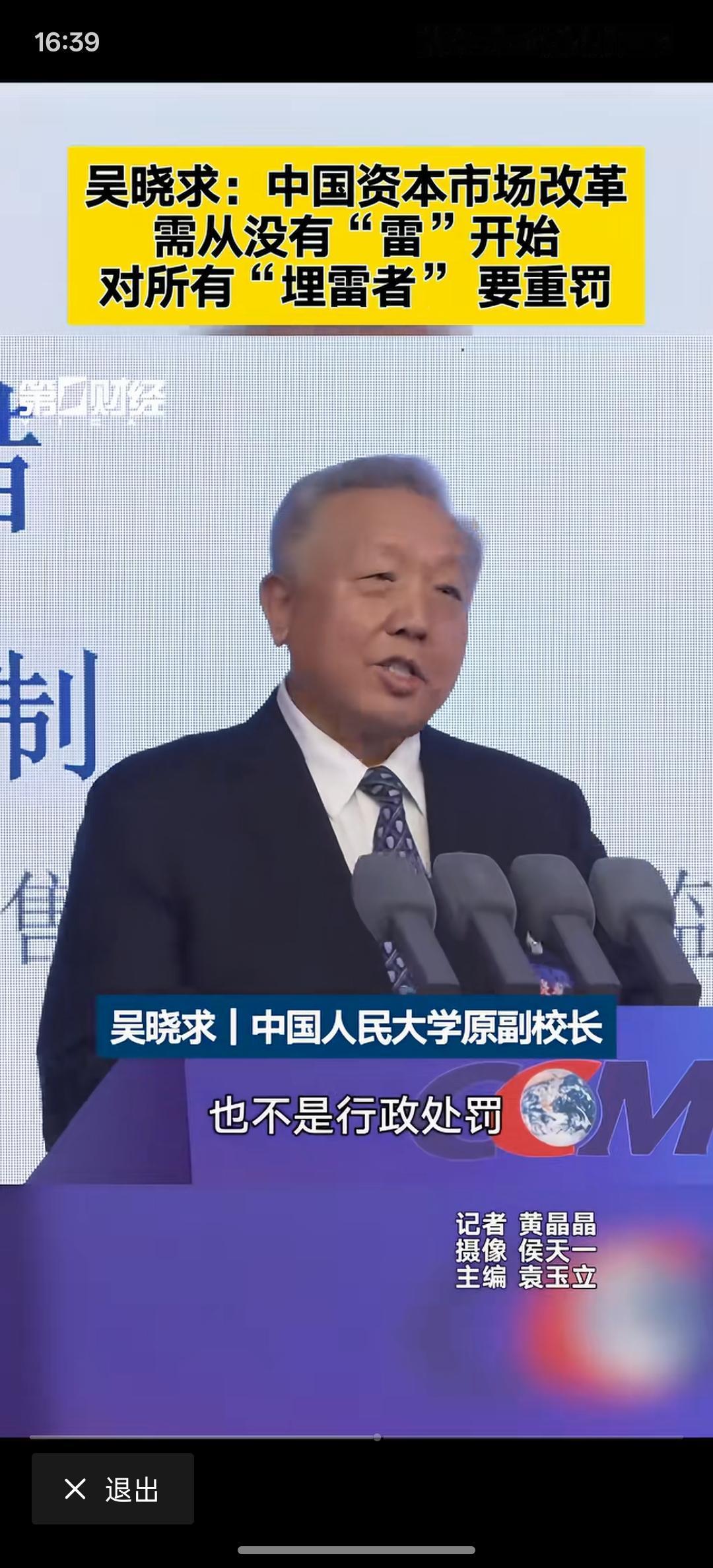 吴晓求:资本市场改革须用重典 应对“埋雷者”追究刑责、民事赔偿,这是要下大力度整改资本市场,要让资本市场形成长期稳定发展!一旦追究刑事责任甚至民事赔偿,这些造假的埋雷的就会有所收敛!处罚力度大于造假利润,他必然就不敢踏入这样的冒险步伐!对资本市场要加大惩罚力度!才能让资本市场健康发展!