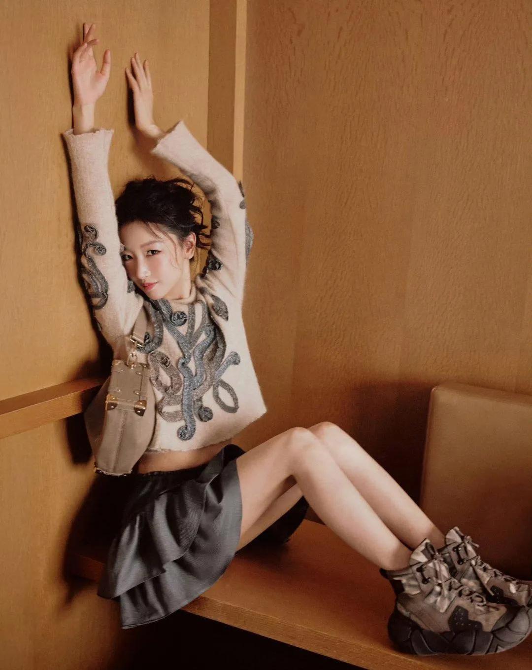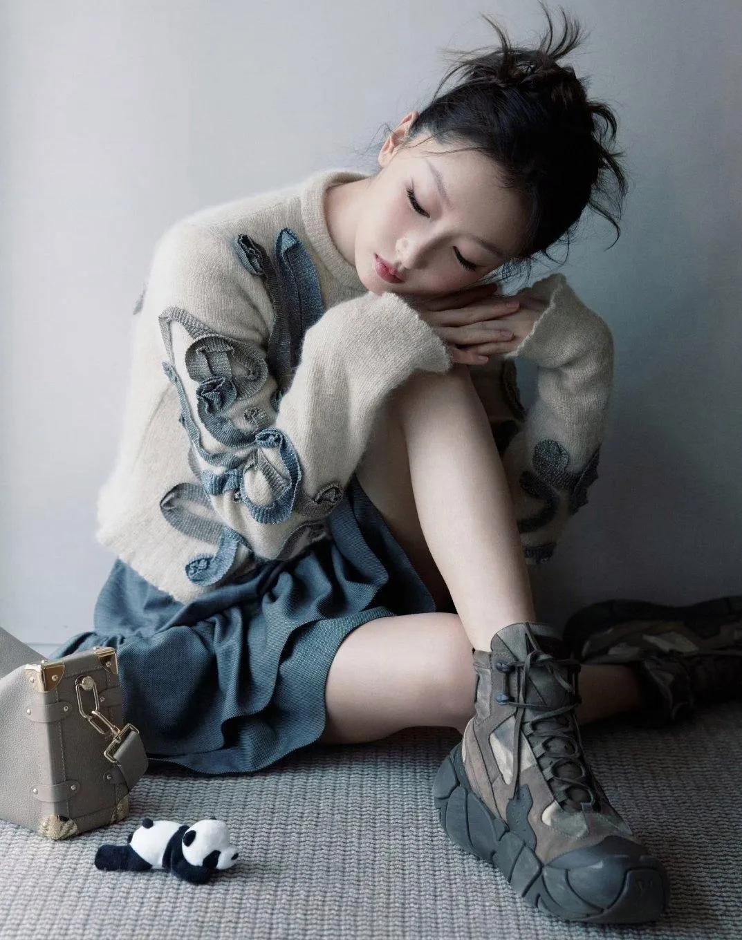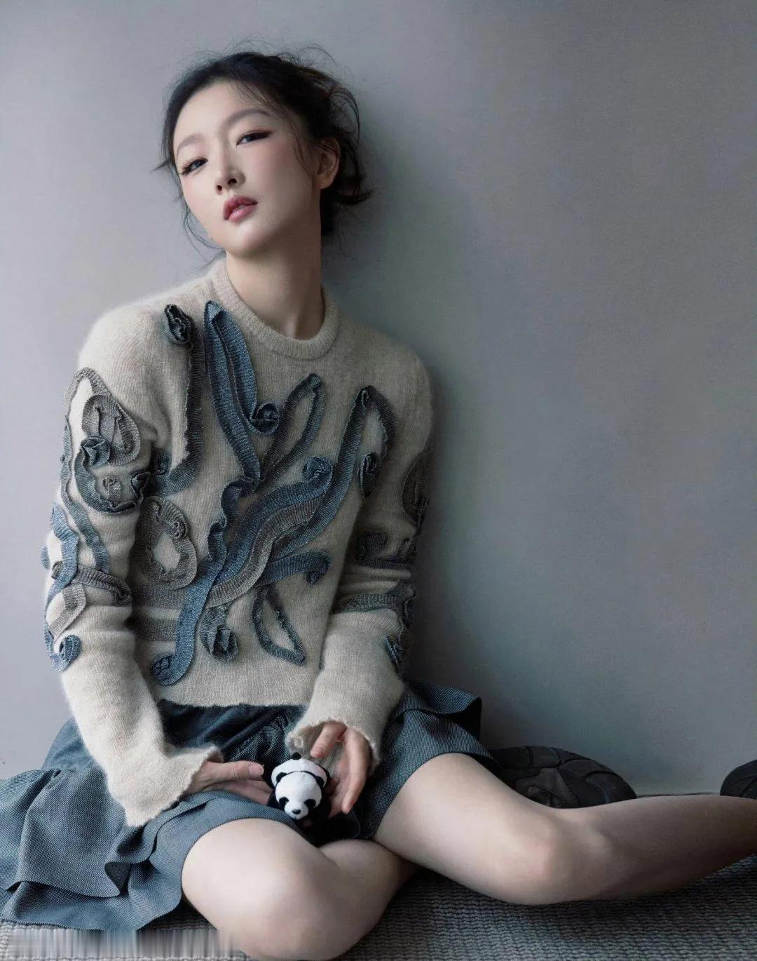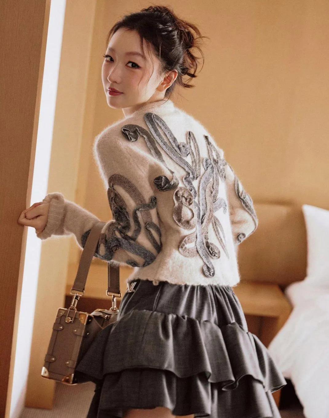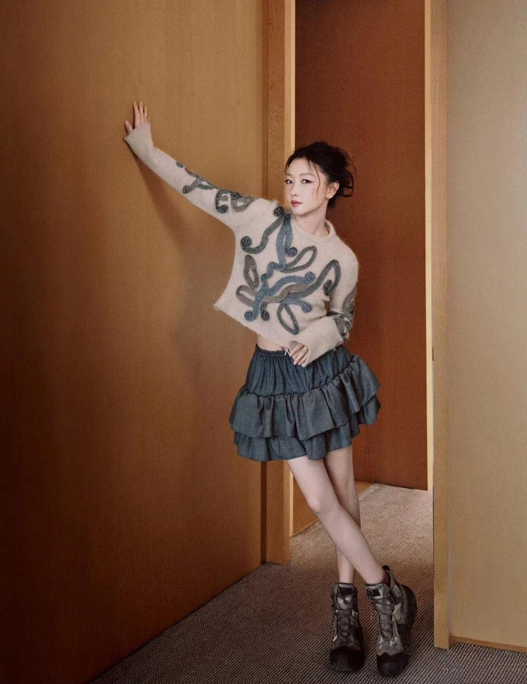 周冬雨把毛衣穿成了时尚教科书! 一件设计感满满的针织上衣,搭配一条灰色短裙,把少女感与高级感焊在了身上。 她的美,从来都不是靠堆砌,而是这种恰到好处的松弛感。这才是普通人也能借鉴的穿搭范本,好看又舒服,真的太会穿了!