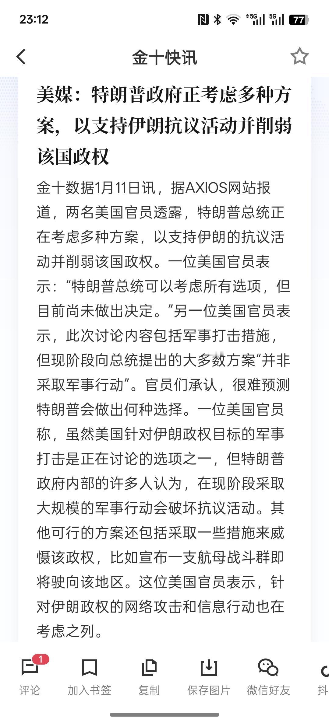 伊朗警告美方:若伊朗遭袭 必将对以色列与美国实施打击。伊朗现在是内忧外患了,内部目前抗议者大幅度的机会抗议,美国对伊朗虎视眈眈,美国政府要支持伊朗抗议活动,以此乃削弱伊朗政府所控制的正权,美国这是想利用这个时间节点对伊朗民众与政府进行分离!达到美国政府享受目前伊朗政府的控制权