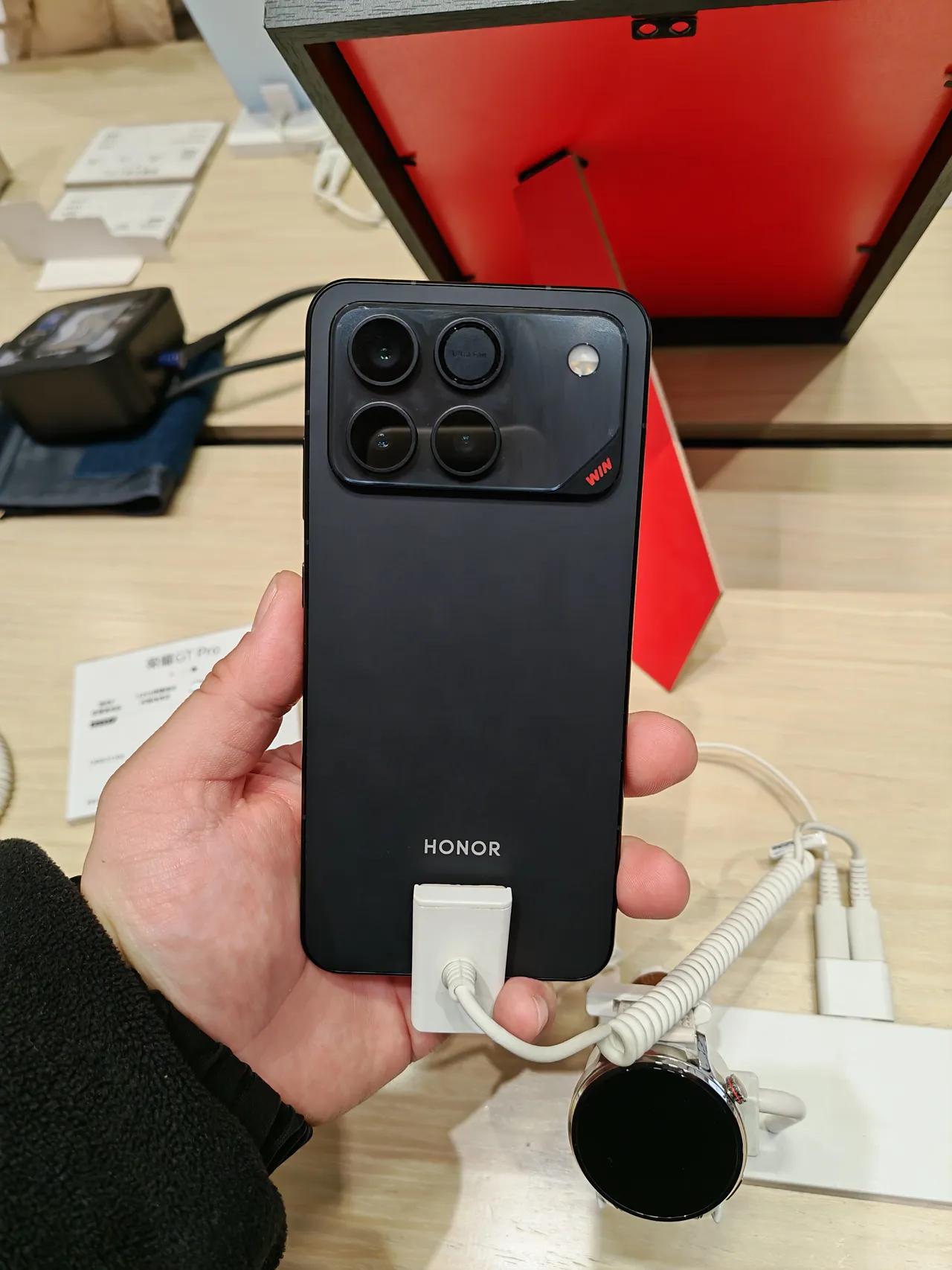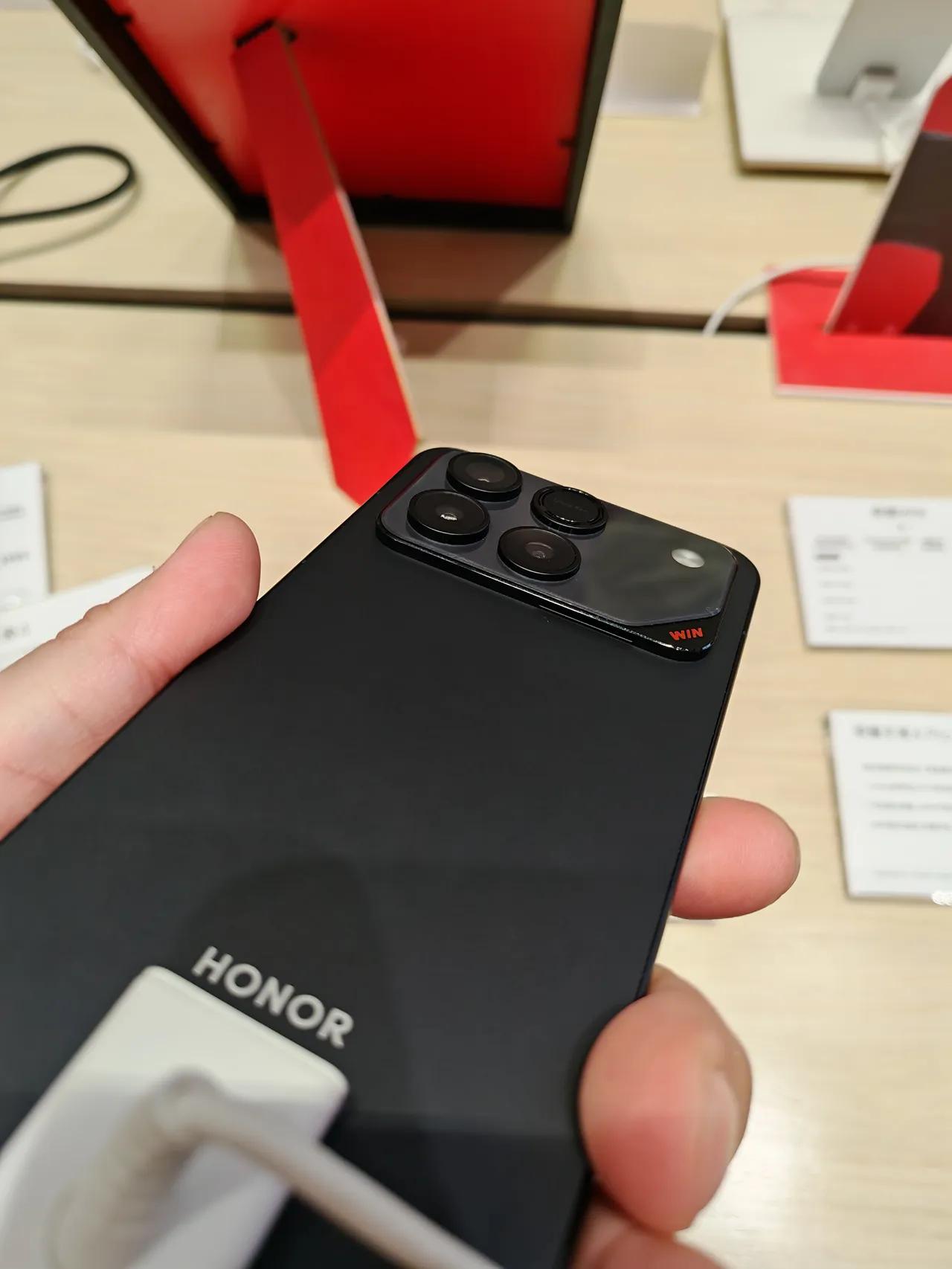 荣耀WIN真机上手体验。 今天又特地去门店感受荣耀WIN真机,虽然二次去刷该机,还是依旧给到我惊喜。 搭载10000mAh大电池手机,拿在手里感觉无论是重量、厚度、手感等等都和我目前在用荣耀Magic8并没有太大差异。 作为一部定位电竞旗舰机,荣耀WIN本已是不折不扣的六边形战士,可官方仍嫌不够,直接再加码:东风涡轮散热。 一键开启,风扇飙至25000转/分钟,指尖立刻感到疾风贴脸;哪怕高负载3A大作,机身依旧冷静如初,玩家只管酣畅淋漓。