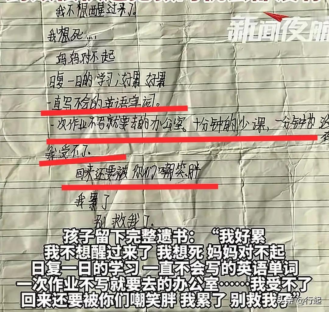 12岁小学生家中服药自杀,妈妈把责任归于英语作业,二审即将开庭。 这则新闻令人心碎,也引发了很多关于家庭、学校和社会对孩子成长压力的反思。以下是我对事件的分析和一些建议: 事件回顾: 一名12岁女孩因学习压力巨大,表达了极度的痛苦,最终吞药自杀。 她的遗书中提到“回来还要被你们嘲笑胖”,反映出家庭和学校环境中存在的压力和不被理解的痛苦。 女孩的母亲将学校和英语老师告上法庭,认为他们未尽责任导致悲剧,但法院判决因果关系难以认定,母亲继续上诉。 事件引发公众对青少年的心理健康、教育压力和家庭关系的关注。 核心问题: 学习压力与心理健康:过重的学业负担和缺乏有效的心理疏导,可能让孩子无所适从,甚至走向绝路。 家庭与学校责任:家庭和学校应共同关注孩子的心理状态,而非单纯关注成绩。 社会环境:社会对于“成功”和“优越”的单一定义,可能让孩子在压力中迷失自我。 关爱与理解的重要性:孩子需要的是理解、接纳和支持,而不是压力和嘲笑。 建议: 家长应多关注孩子的情绪变化,倾听他们的心声,给予真诚的关怀。 学校应重视学生的心理健康,提供心理咨询和疏导,减轻不必要的学业压力。 社会应倡导多元价值观,减少对成绩的单一追求,鼓励孩子全面发展。 所有成人都应认识到:孩子的成长不仅仅是成绩的提升,更是身心的健康成长。 最后,希望每个孩子都能在爱与理解中成长,无论遇到什么困难,都不要放弃希望。生命宝贵,未来无限可能。让我们共同努力,营造一个更温暖、更包容的成长环境,为孩子们撑起一片晴空。