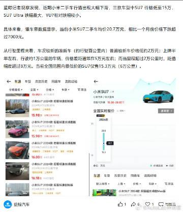 毕竟是两年前的车了,小米SU7二手车价格跌一跌很正常吧