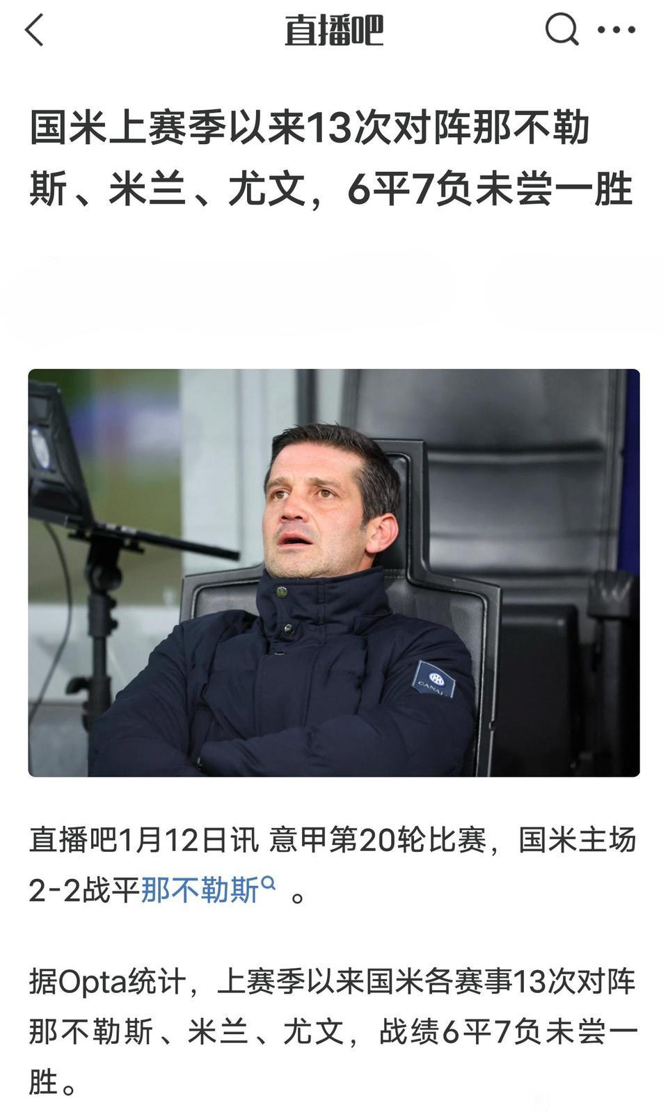 国际米兰最大软肋,踢强队不行! 那就不要欧冠了,那边全是强队。 意甲弱队比较多,拿联赛更稳一点。 国米只能平米兰,平那不勒斯,对弱队全取三分也行啊。[大金牙]