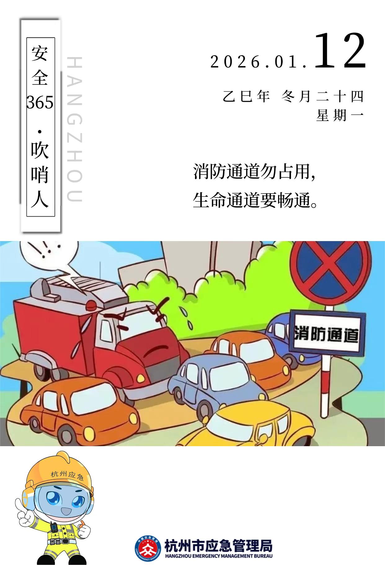 消防安全 消防安全很重要, 事前预防第一条; 生命通道要畅通, 消防通道勿占用。