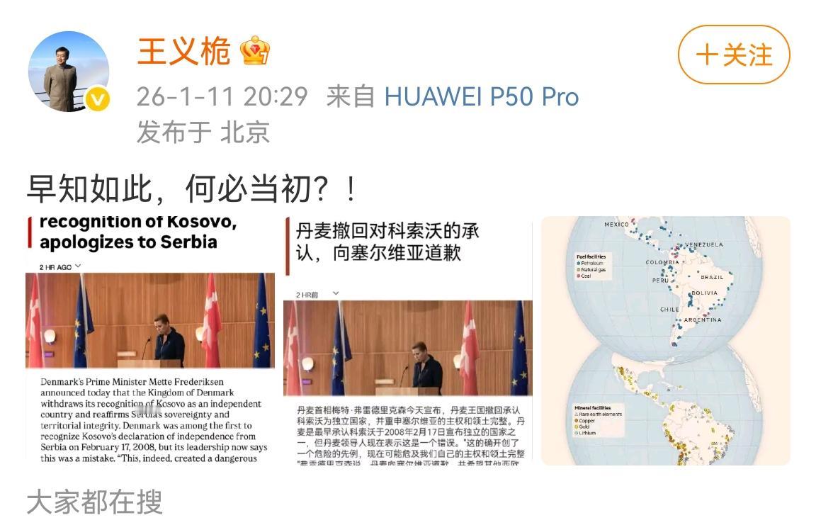 历史级别转变,丹麦突然对尊重别国主权和领土完整有了质的提升。 你敢相信?丹麦居然对塞尔维亚道歉并撤回承认科索沃为独立国家。还再三声明尊重塞尔维亚的主权和领土完整。 网友看到百万粉博主(图三)这个爆料都笑喷了,这是真的吗? 原来西方国家很多道理都是很清楚的,只是以前事情没发生在自己身上。现在面对老美的霸权主义,以及自己那朝不保夕的国土完整,转变速度让人惊叹。 无他,就让老美的铁拳继续捶打这群爱装睡的人吧。[捂脸][捂脸]