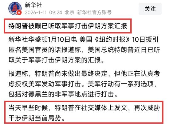 现在感觉有点压不住了!似乎快到临界点了。 据《纽约时报》报道:懂王已听取关于军事打击伊朗方案的汇报,包括对德黑兰非军事地点进行打击,但尚未做出最终决定。 懂王还在社交媒体上发文称:愿意帮助伊朗的抗议者们,包括军事介入。   其实伊朗这轮抗议,根本不是西方媒体吹的什么“政权危机”。说白了就是老百姓日子过不下去闹情绪,又被美以趁机煽风点火放大了而已。去年年底从德黑兰一群手机商贩开始,因为里亚尔贬得太厉害,进口货卖出去,收回来的钱就缩水,越卖越亏才闭店抗议。   后来不少学生、底层民众跟着加入,慢慢扩散到了好几个省份。但这事的本质就是经济困难引发的情绪发泄,跟所谓的“政权更迭诉求”压根不沾边。   伊朗人心里都门儿清,真要是政权乱了,国家搞不好就分裂了。周边阿富汗、土耳其都虎视眈眈,内部还有库尔德问题,没人愿意真把自己的饭碗砸了。   西方媒体倒是会添油加醋,把局部商贩的抗议吹成“整个商人阶层反水”,还抓着些零散视频刻意塑造悲情形象,玩的就是典型的“颜色革命”套路。   可实际情况不是这样,伊朗的石油工人没罢工,这可是国家的经济命脉,1979年革命能成,石油工人罢工是关键。军警系统也没倒戈,核心力量还牢牢攥在手里。   就连政治和宗教精英内部,也没出现公开分裂,这三点就注定抗议掀不起颠覆性的风浪。伊朗政府断网也只是暂时降温,怕社交媒体被用来快速动员。毕竟经济还得靠互联网运转,不可能长期停摆,说白了就是先稳一稳情绪,再慢慢解决经济问题。   懂王这时候跳出来喊要军事介入,说白了就是打如意算盘。他想靠低成本威胁逼伊朗政府手软,让抗议慢慢侵蚀政权,实现“不战而胜”的目的。他心里比谁都清楚,现在根本不是对伊朗动武的好时候。   伊朗早就放了话,已经为战争做好了准备,虽然不主动寻求战争,但真要打起来,周边的美军基地就是现成的打击目标。这跟当年拿捏委内瑞拉完全不一样,伊朗有实打实的反击能力,真动手美国讨不到半点好处。   而且美国这边,连航母编队都没在伊朗周边部署到位,调动装备和人员至少还得一个月。现在讨论的打击方案,多半是“常规计划”,连装备都没动,说白了就是喊得凶,实际没多少底气。   懂王这么急着在伊朗问题上刷存在感,核心还是为了国内的算盘。明年就要中期选举了,他急需靠对外强硬的姿态拉选票。马斯克都已经重回共和党阵营砸钱支持他,他必须搞点大动作稳住基本盘。   之前搅乱委内瑞拉局势没闹出太大水花,伊朗这边刚好有抗议活动,自然就成了他转移注意力、塑造强硬形象的工具。   他在采访和社交媒体上一遍遍地放狠话,说要是伊朗当局再有人员死亡就“严厉打击”,还让副总统跟着呼应,支持所谓的“和平抗议者”。这本质上就是认知战的一部分,想靠嘴炮煽动伊朗内部情绪,让局势更乱,自己好坐收渔利。   可伊朗也不是软柿子,面对威胁直接硬刚了回去。最高领袖哈梅内伊明确表态绝不屈服,警告敌人别想把自己的意志强加给伊朗。国防部门更是划出红线,强调国家领土完整和安全绝不容侵犯。   外长也直接放话,美以过去对抗伊朗的企图都失败了,新的尝试也只会重蹈覆辙,现在伊朗已经做好了应对一切情况的准备。   伊朗政府一边给民众发补贴,试图缓解经济压力,一边严厉警告国内囤积抬价的商贩。虽然这点补贴,对每月要花上千块人民币维持生计的民众来说杯水车薪,但也能看出他们在尽力稳住内部,不让外部势力有机可乘。   现在说的临界点,根本不是伊朗政权要垮,也不是美伊马上就要开战,而是懂王的政治博弈和伊朗的内外困境撞到了一块儿。懂王需要靠伊朗问题刷政绩,可又不敢真的动手,只能靠威胁和煽风点火拖延时间。   伊朗内部经济问题难解,抗议情绪也没那么快平息,但政权根基没动摇,也不怕外部的武力威胁。双方就这么僵持着,懂王每多一次放话,局势就紧张一分,可真要跨出军事打击那一步,他又得好好掂量掂量代价。   之前美以就靠认知战、情报战给伊朗添乱,去年六月还打了十二日战争。这逼着伊朗把更多外汇投到国防上,民生投入进一步压缩,经济矛盾才彻底爆发。现在懂王又想故技重施,以为靠几句威胁、帮抗议者喊几声,就能拿捏伊朗。   可他忘了,伊朗经历这么多年制裁和冲突,早就不是吓一吓就能服软的。而且美国国内也不是铁板一块,不少人都清楚,现阶段对伊朗动武只会引火烧身。   这局势之所以让人觉得快到临界点,就是因为懂王一直在试探底线,而伊朗的耐心也在被持续消耗。他要是再这么煽风点火,说不定哪天就擦枪走火了。   毕竟伊朗已经明确说了,美国敢干涉就会报复,到时候整个中东都会陷入混乱。可懂王要是见好就收,又没法给国内选民交代,选举压力摆在那儿,他也退不起。