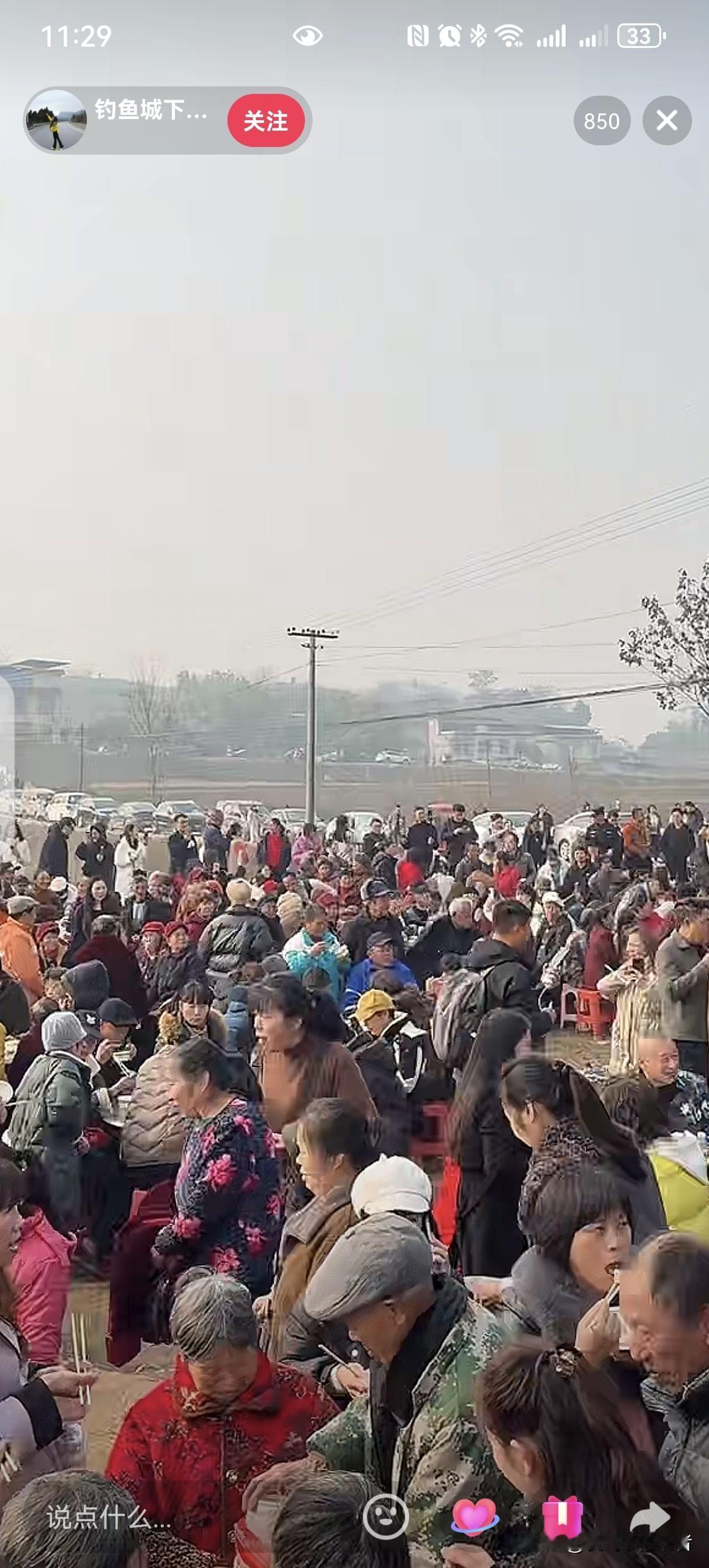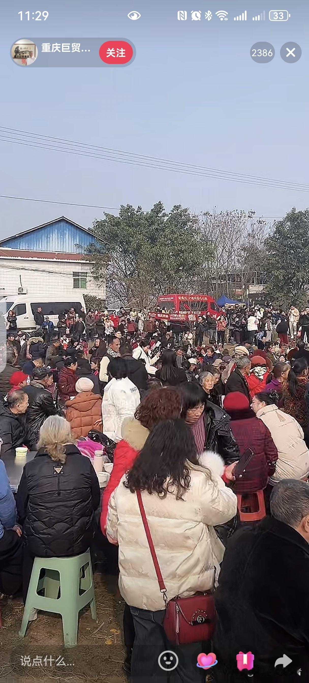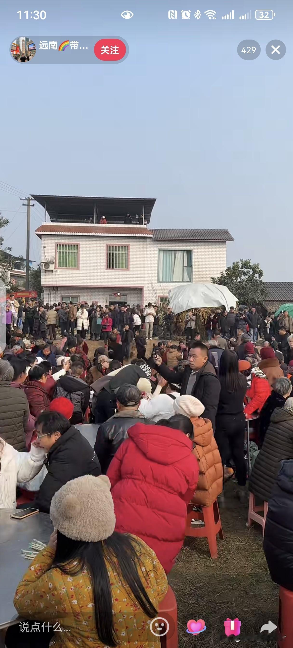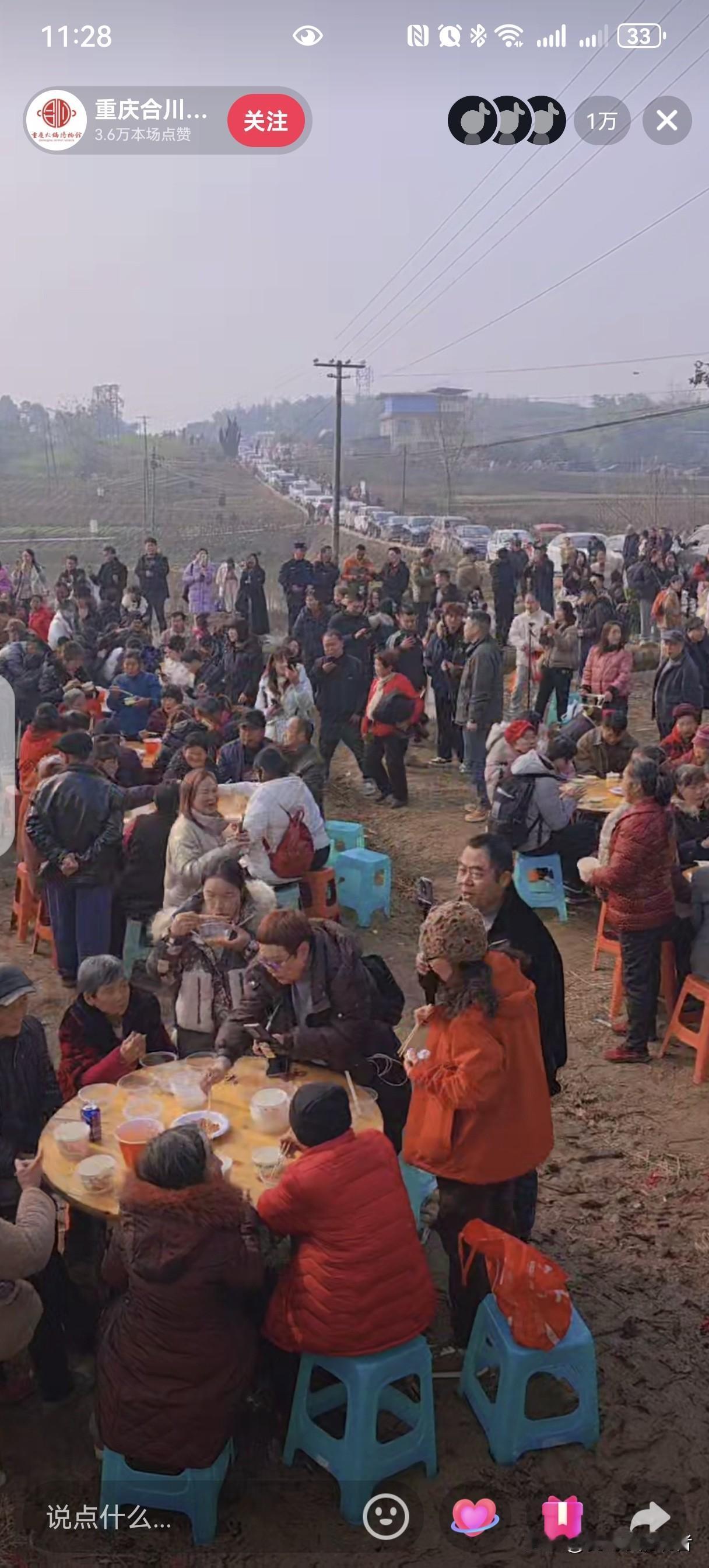 一个人带火一座城, 就因为杀两头年猪, 重庆合川这次赢麻了, 发起人呆呆一天涨粉四十万, 看着密密麻麻的人群更加发呆了, 没想到呀,没想到, 就因为号召网友来按猪免费吃泡猪汤竟然 引得全网狂欢, 全国网友竞相奔向合川提前感受过年的欢乐, 县城到呆呆家的道路上全部都是车流, 这是合川多年没有遇到过的盛况呀。 看来大家都喜欢闹热呀, 如果近的话我也准备杀过去吃泡猪汤了。