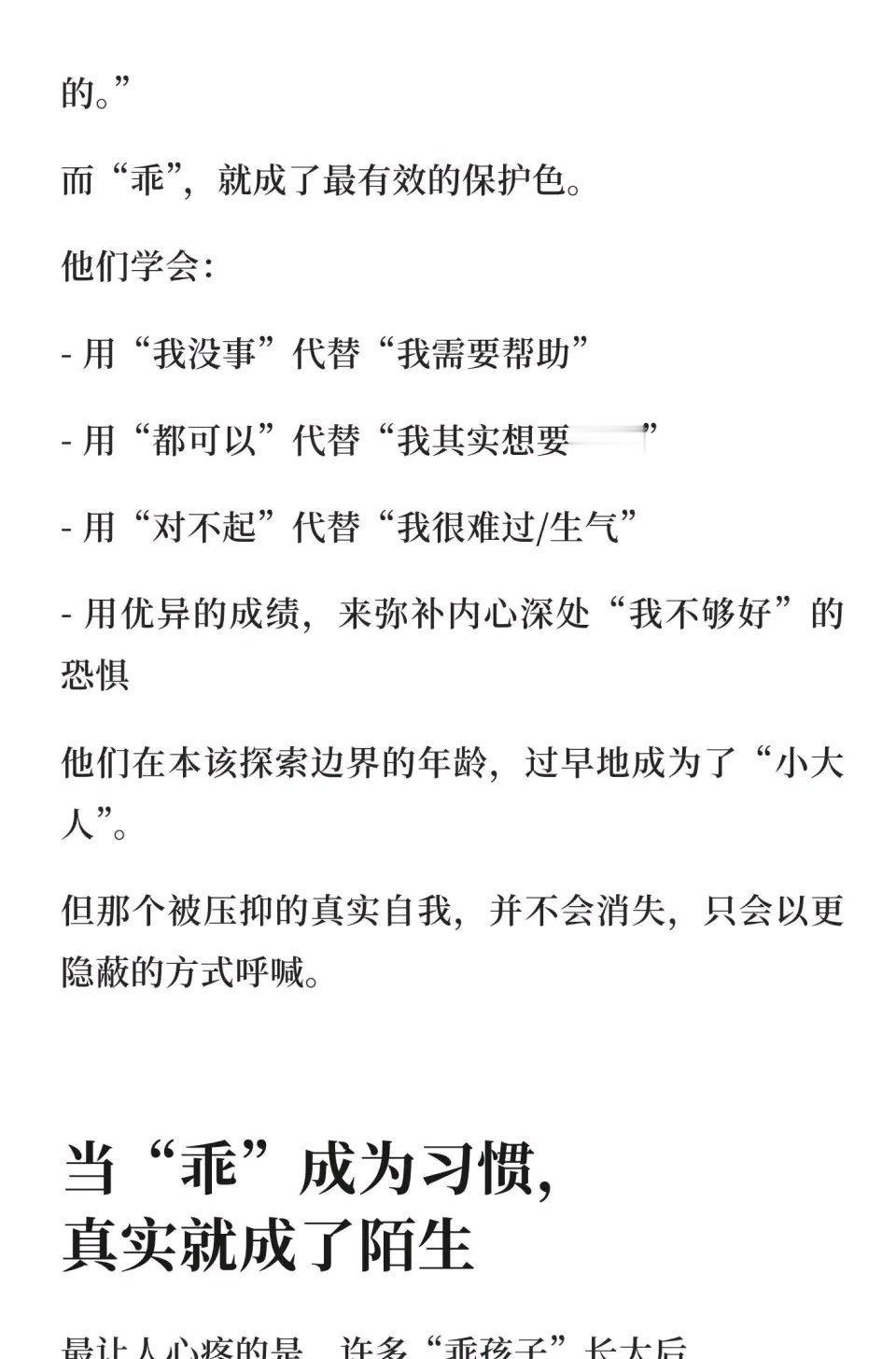 很多人会发现,越乖的孩子长大后心理问题越多,就像苏有朋。他在访谈里哭着离场,即便他唱歌火遍亚洲,当演员、导演都很成功,却仍觉得妈妈看不见自己。他从小就是“最省心”的孩子,15岁就照顾妈妈情绪、替弟弟承担,可还是换不来一句认可。 其实“乖”的本质是一种求生策略。在心理学里,很多“过度乖巧”是孩子在高压环境下的自我保护。比如家里常吵架、父母情绪不稳,孩子只能压抑自己的需求,去迎合大人。长大后,他们习惯隐藏真实感受,内心积累的负面情绪越来越多,心理问题也就随之而来。