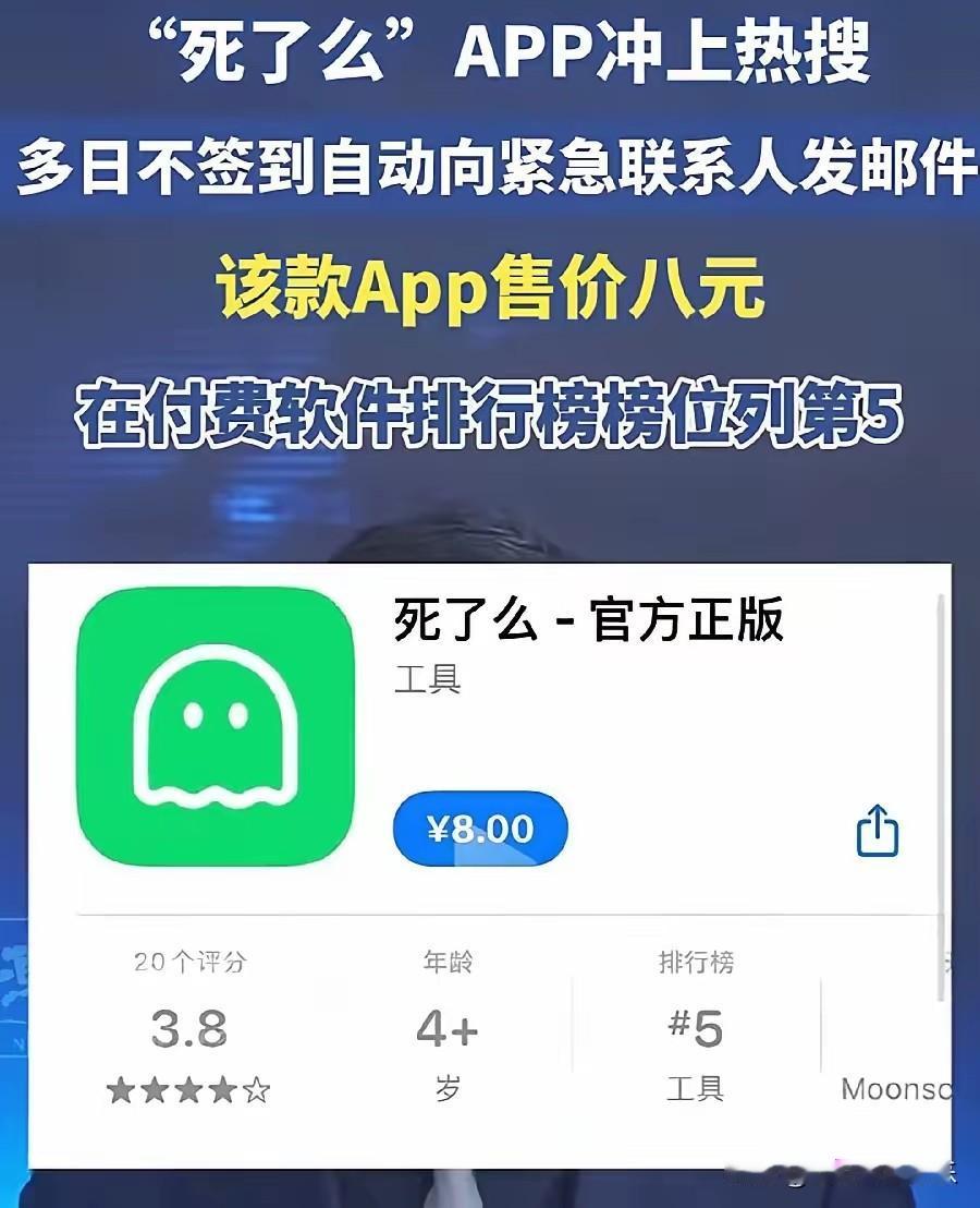 死了么app千万不要下载,下载一次八块钱,开发成本1000元,却市值一千万。 不出意外,很快就会出现下一个死了么活了么,却是独居老人的痛点。 北京一个四十岁最后的女士独居后离世,没有人发现财产也充公了,就连墓地都没有。 独居的痛点就是没有人知道他在不在了,生命其实很脆弱,如果每天打卡报平安,亲友也会知道他好不好。 死了么app就是抓住这个痛点火了,从八块钱涨到18都有人下载,一旦下载就会发现忘了签到就会被问候关心,利大于弊。