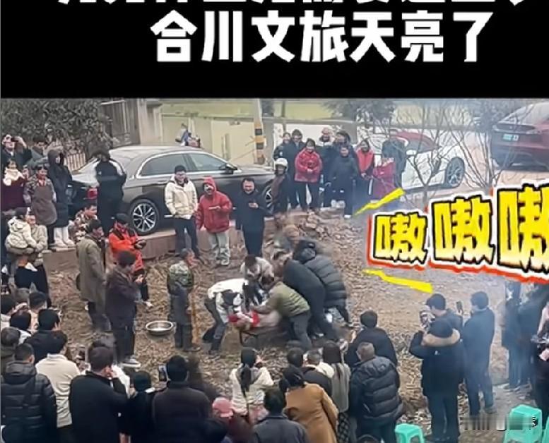 笑不活了!一个人怎么能闯出如此大祸呢?明明是想喊点网友帮忙按年猪,没曾想一生爱凑热闹的中国人,竟来了上百人帮忙按猪,这两头年猪根本不够吃啊! 要说中国人的凑热闹基因,那真的是刻在骨子里的。重庆合川一位叫呆呆的博主,本想喊网友帮衬着按两头年猪,结果直接引来上百号人奔赴现场,场面热闹得堪比赶集,网友们直呼:这两头猪怕是连塞牙缝都不够! 事情的起因特别接地气,呆呆在网上发了条求助:“1月11号要杀两头猪,有人来帮我按猪吗?请你吃泡汤饭!”还调侃说老父亲年纪大了怕按不住,就想让家门口停满车,在村里扬眉吐气一回。谁也没想到,这条看似随意的求助,竟戳中了网友们的“凑热闹开关”。 到了杀猪这天,呆呆家门口直接被挤得水泄不通,上百名网友从各地赶来,有的专程开车过来,有的甚至带着工具就上阵,现场乌泱泱一片全是人,按猪的、看热闹的、拍视频的,把小小的院子围了个里三层外三层。 原本只需要几个人的按猪活儿,愣是变成了“百人团建”,那场面,比村里办喜事还热闹。 更搞笑的是,大家忙活完才发现,就两头年猪,面对上百号前来“赴约”的网友,别说泡汤饭管够了,怕是每人才只能分到一小块肉。 有网友打趣:“呆呆怕是要哭了,本来想扬眉吐气,结果差点把家底吃空!”还有人调侃:“合川文旅连夜加班,这波流量密码算是被呆呆拿捏了!” 其实这事儿也透着一股子中国人独有的可爱,一句随口的邀请,换来一群人的热情奔赴,无关利益,就图个热闹、凑个乐子。 这种陌生人之间的善意和趣味,也让这个冬天多了不少烟火气。不过估计呆呆下次再喊人帮忙,得先数数自家的猪够不够多了!
