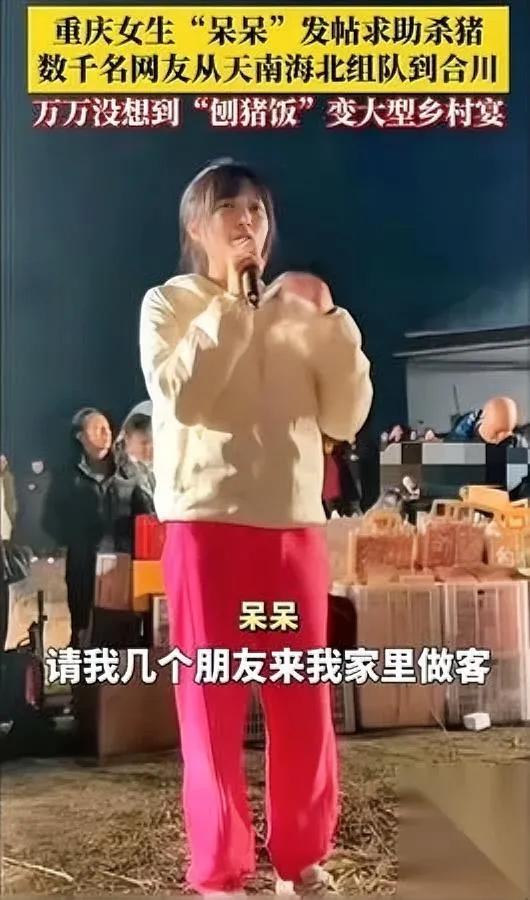 呆呆杀猪宴闯祸?合川笑了! 万万没想到这阵仗惊动全网… 重庆合川小女生呆呆发帖喊“1月11号杀两头猪,帮忙按猪的管饭,要家门口车比结婚还多!”本是小姑娘的小心愿,却让全网网友炸了锅!现场车子排到村外几里地,村子堵得水泄不通。文旅部门赶紧来搭把手,交警蜀黍也全员上岗维持秩序。十万人线上围观,四千多人现场帮忙、吃肉喝汤,那叫一个热闹! 这杀猪宴爆火,哪是为了吃肉?分明是大家都想念那久违的人间烟火气!比起那些刻意打造的网红打卡地,这种普通人自发的热闹,才是治愈快节奏生活的好东西。最动人的快乐,可不就藏在这些接地气的小事里嘛! 你有多久没见过这么热闹的场面啦?快来评论区说说你记忆里的烟火气!