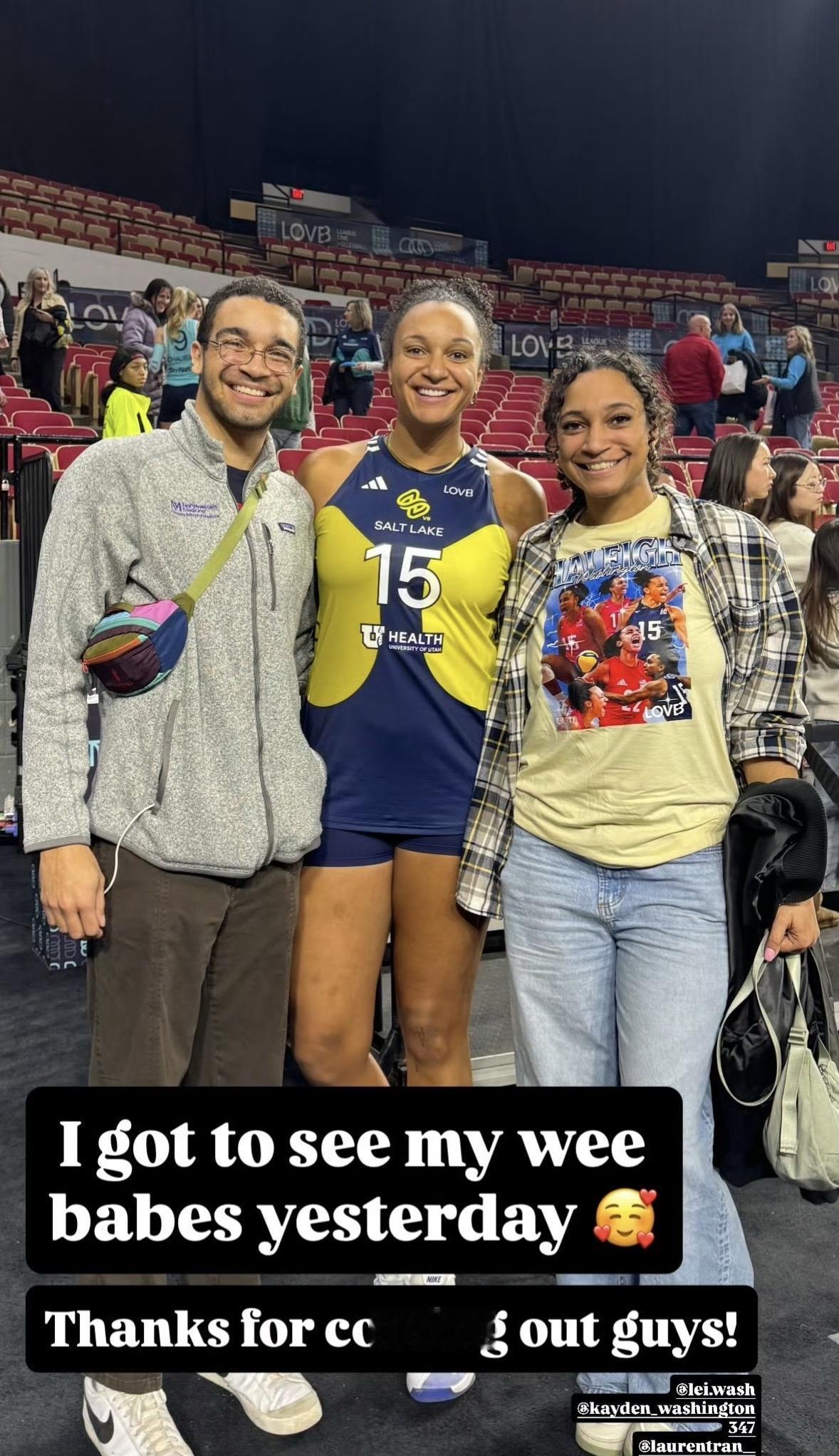前美国女排国手副攻“墩墩”华盛顿的家人去比赛现场给女儿墩墩支持,看起来墩墩的卷卷的发质更像妈妈,而嘴角上扬的笑容更像爸爸,这一家人的基因特别强大!