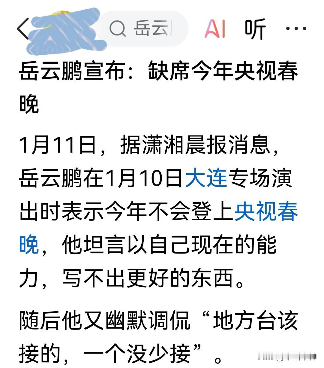 小岳岳真要缺席今年春晚,可能不会让很多观众失望! 1月11日,据潇湘晨报消息,
