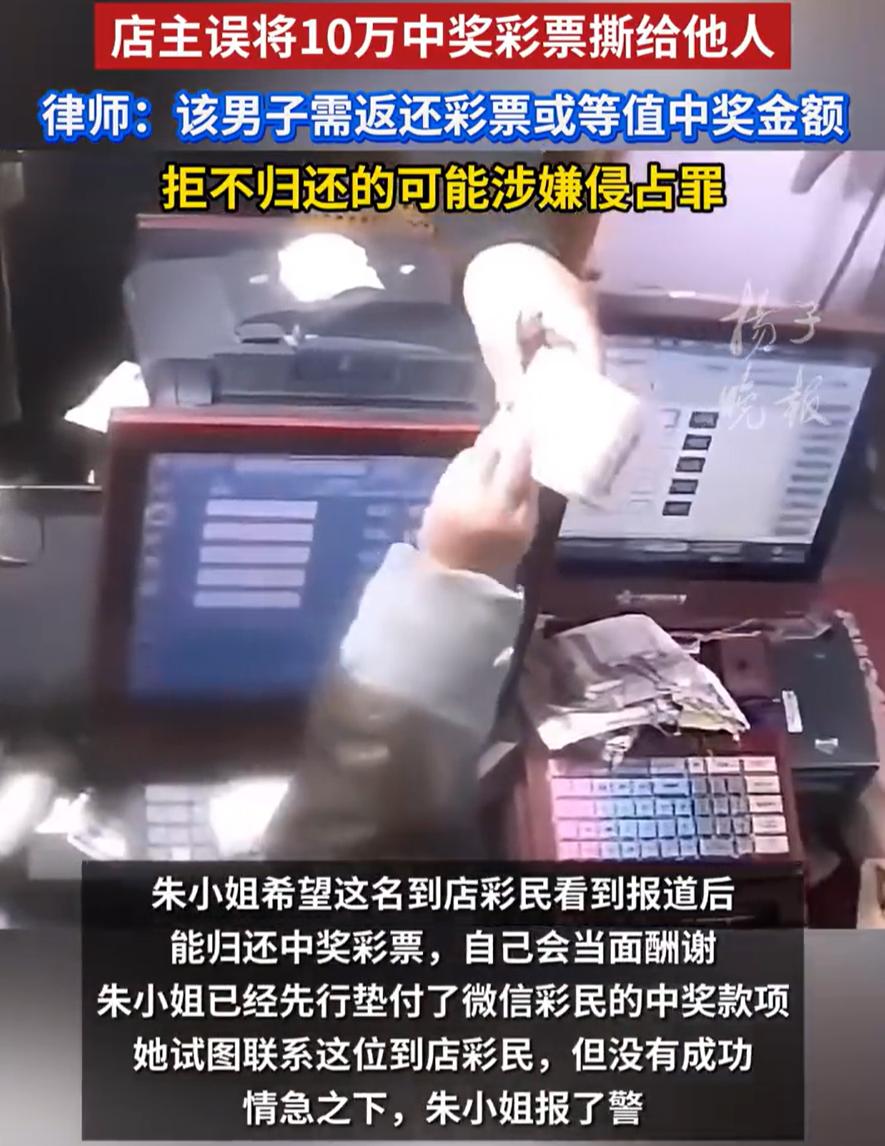 这便宜可占不得!江苏扬州,一位彩票店主在给网上彩民打票时,刚好店里来了客户,一时疏忽,两张票就搞错了,万万没想到,弄错的那张彩票中了10万元大奖,店主联系不上对方,只能选择报警 彩票店老板朱小姐平时既接线下客人,也帮网上彩民打票,当天她像往常一样忙碌着。她一边处理着手机上的彩民订单,一边招呼着进店的客人。这天下午,一位网上下单的彩民选好了号码,朱小姐照常打出彩票。恰在此时,店里来了位男顾客,她顺手将刚打出的两张彩票撕下递了过去 就是这一个顺手,埋下了后面一连串的故事 开奖结果公布后,朱小姐的手机响了。那位网上彩民激动地询问中奖彩票,朱小姐却怎么也找不到那张票。调出监控一看,她心里咯噔一下,原来下午顺手递给男顾客的两张彩票里,有一张正是网上彩民下单的那张,而这张彩票,中了10万元大奖 朱小姐先是自己垫付了奖金给中奖的网彩客户,然后开始寻找那位错拿彩票的男子。她尝试通过支付记录联系,却始终没有回音。无奈之下,她选择了报警求助 这事传到网上,不少人议论纷纷。有人说,人家是正儿八经花钱买的票,凭什么要还?也有人说,店主自己失误,该承担后果。更有人质疑,报警真的有用吗? 站在那名男子的角度,他确实是掏了钱,从正规彩票店拿到的彩票,表面上看没有任何违规操作。可站在事实层面,这张票对应的购买指令、付款记录、选号信息,全部来自线上彩民。也就是说,这张票的归属并不是看谁先拿到纸,而是看这张票是为谁打的 线上彩民已经完成了下单、付款、选号或确认号码的完整购买行为,彩票店只是代为打印和交付。也就是说,在法律关系上,这张彩票对应的买卖合同已经成立,权利主体是线上彩民,而不是后来到店的男子 到店男子虽然付了钱、拿到了票,但他拿到的是一张并不属于他购买指令范围内的彩票。这种情况在法律上通常被认定为因他人操作失误导致的交付错误,而不是合法转让。票在他手里,不等于权利就发生了转移 如果他在明知或应当知道彩票并非自己所购彩票的情况下,仍然选择兑奖并占有奖金,这种行为在法律上可能构成不当得利。简单说,就是没有合法依据取得了不属于自己的利益,依法是要返还的 对店主来说,法律责任主要在于经营过失。她把票给错了人,导致损失发生,原则上要先对真正的购买人负责。这也是她先行垫付奖金的原因。但这并不代表错拿彩票的人可以因此合法占有奖金 所以说,占到的便宜不一定站得住脚,拿得住、拿得稳,前提永远是合法。否则哪怕中奖了,最后也可能一分留不下,还惹上一身麻烦