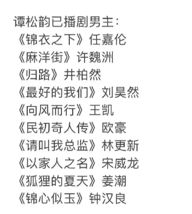 网友问谭松韵是不是最抗剧的90花? 被她带飞的男主有任嘉伦,钟汉良,井柏然,刘昊然,林更新,宋威龙 ​​​