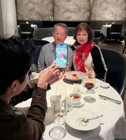 陈乔恩全家聚餐,女婿给岳父母拍照