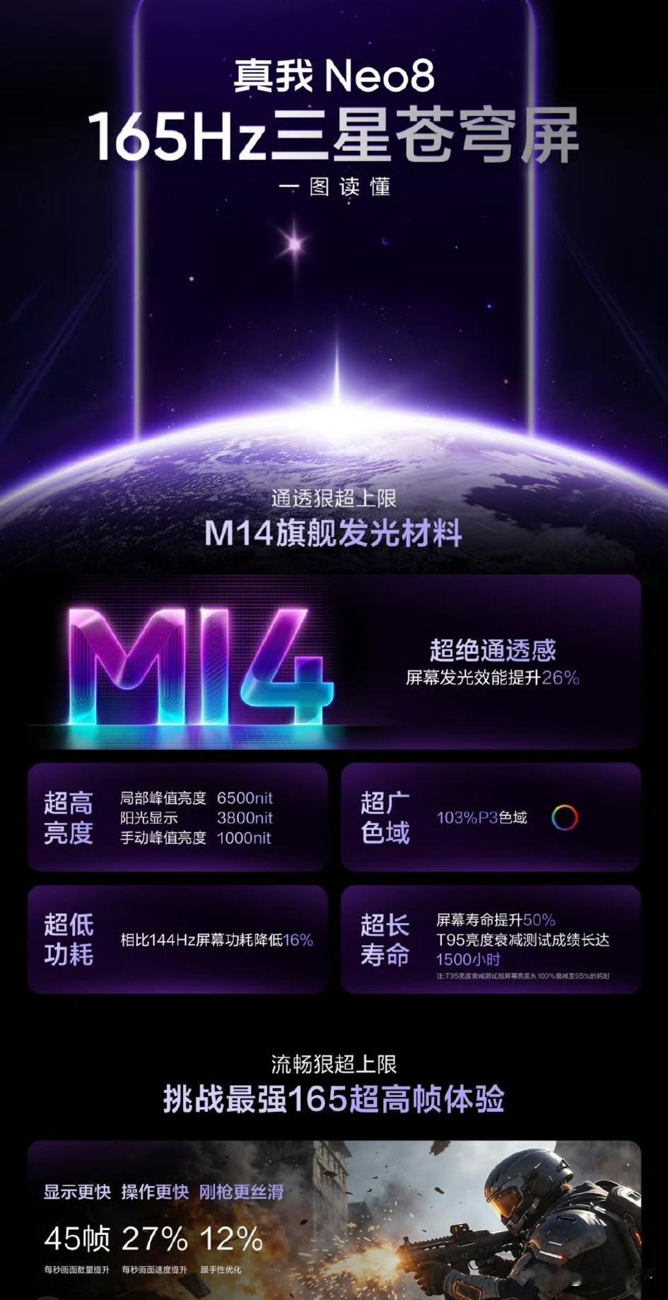 真我Neo8首发三星165hz苍穹屏[奸笑]一加真我都是在普及165hz高刷 一加用京东方,真我用三星,还是有差异化的,一加电池容量更大,Neo8/GT8都是用的JN5潜望长焦,有总比没更好吧[笑哭]真我回归OPPO 和一加主打差异化,电池容量+影像配置的不同