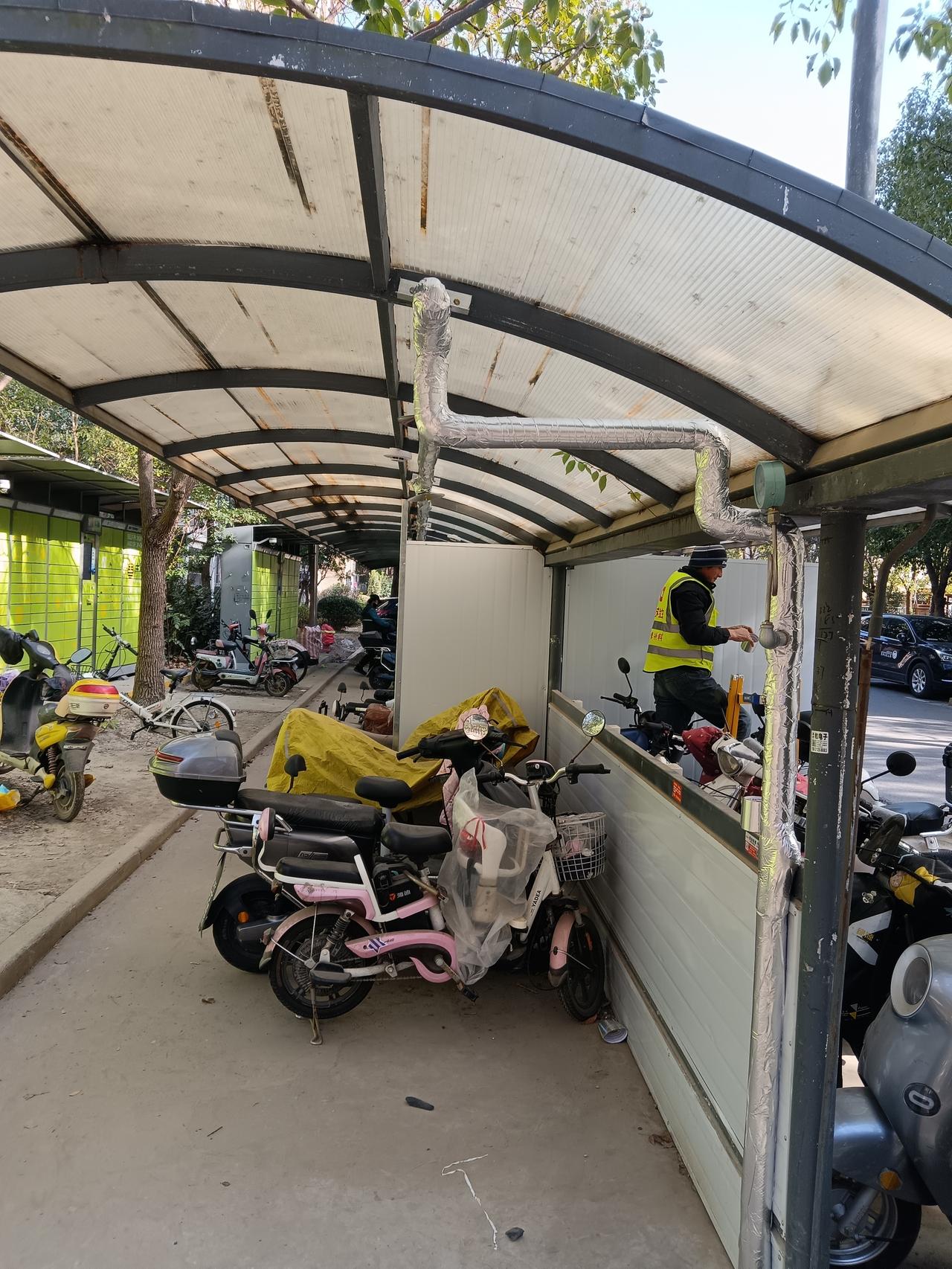 上海好,怪不得都跑来定居。 今天路过小区车棚,看到工人师傅装修,我还以为装灯光和
