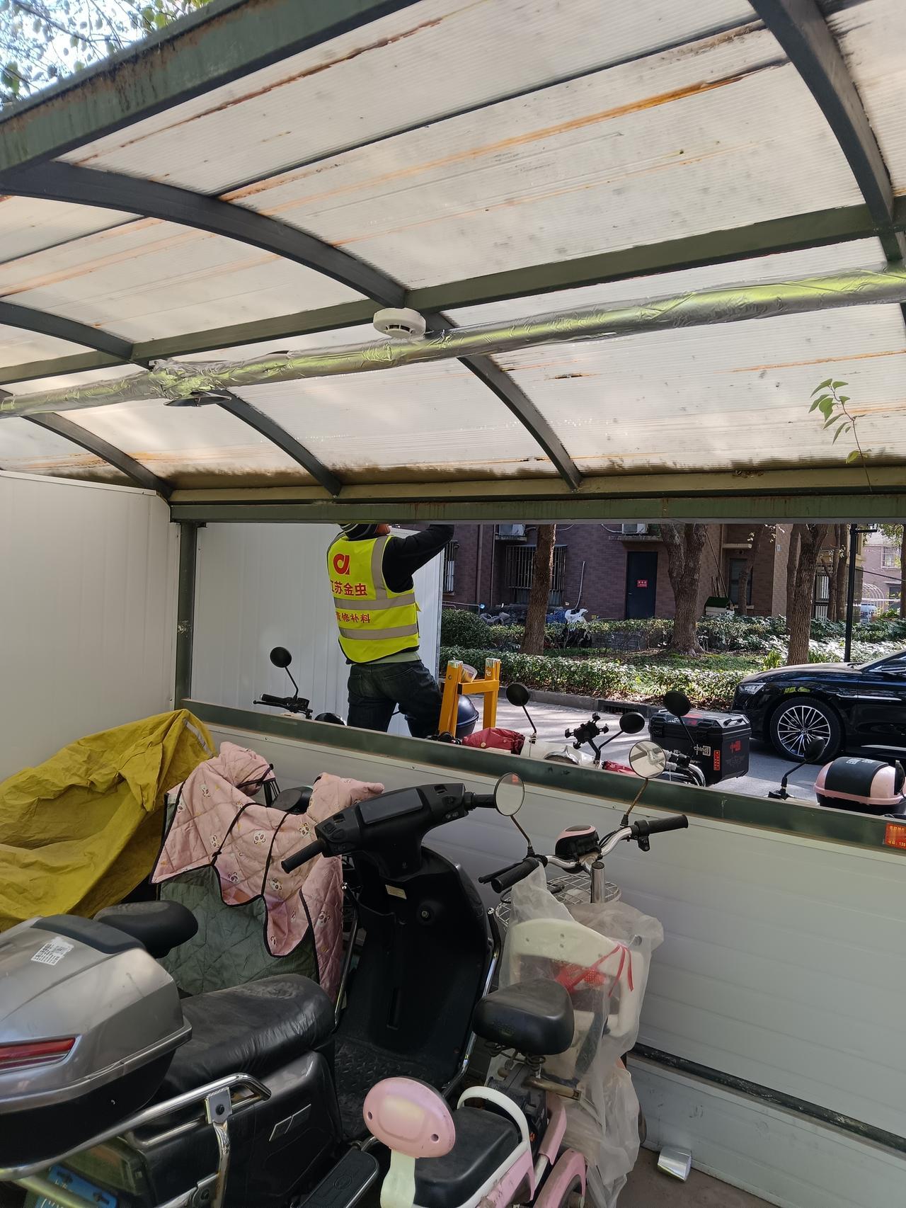 上海好,怪不得都跑来定居。 今天路过小区车棚,看到工人师傅装修,我还以为装灯光和充电的呢,想着里面有充电的,还挺疑惑。结果走近一看,才发现装的烟雾报警器和喷淋灭火系统。 还是上海这样的一线城市有钱,这样一个稍显破烂的车棚,防火也搞得这么正规,想来各方面都不会太差吧,怪不得越来越多的外地人跑来定居。