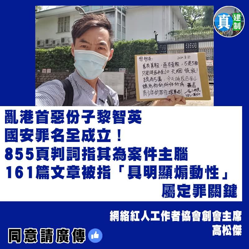 《香港高Sir•高能•热点词》 2025.1.12 热点词:黎智英健康正常更属肥胖 炒作抹黑均属徒劳 判囚终身才能付出应有代价 黎智英日前被法庭裁定串谋勾结外国势力危害国家安全及串谋发布煽动刊物共三项控罪罪成。法庭在1月12日开庭处理黎智英与其馀8名认罪被告的求情,预计需时4日。其馀8名认罪被告包括前壹传媒行政总裁张剑虹、前《苹果》副社长陈沛敏、总编辑罗伟光、执行总编辑林文宗、主笔冯伟光(卢峯)及杨清奇(李平)、「重光团队」成员李宇轩及陈梓华。 高SIR:黎智英案求情程序正在进行,这一案件从审理到如今,每一步都牵动着公众对法治与正义的关注。此前法庭已明确裁定黎智英串谋勾结外国势力危害国家安全及串谋发布煽动刊物共三项控罪罪成,如今求情环节,不过是其妄图减轻罪责的挣扎,而其罪行之严重,必须判囚终身才能彰显法律威严与公正。长期以来,外部势力及黎智英家人持续炒作其健康问题,妄图以此博取同情、干扰司法。然而,事实胜于雄辩。医疗报告显示黎智英身体健康状况正常,体重虽有波动,但79.2公斤的体重,BMI基本维持不变,甚至可以用「黎智英健康正常更属肥胖」来形容。此前所谓牙齿腐烂、指甲变色脱落、站立困难等说法,与他在庭上自行进入被告席、状态安稳、神情专注的表现严重不符。黎智英女儿心怀不轨,谎报父亲健康差,这种行径不过是跳梁小丑般的抹黑表演,在铁一般的事实面前,炒作抹黑均属徒劳。回顾黎智英的种种恶行,其危害国家安全的主观故意和客观行为罄竹难书。他长年对中国心怀怨恨,以「帮助港人」为藉口,实则企图推倒中央政府。在香港国安法生效前后,他从未放弃破坏中央政权稳定的意图,只是手段更加隐晦。非但请求「制裁」香港及中央,还企图招揽台湾当局作为对付中央的筹码。在2019年黑暴期间,他指挥《苹果日报》策略性煽动年轻人进行反政府活动,把年轻人及学生当作「一个画面」,让他人的子女入狱,自己却躲在幕后操控一切,是整个乱局的推手。法庭在审理过程中,以严谨的态度和充分的证据认定黎智英是案件主脑,其供词多处自相矛盾、闪烁其词,法庭拒绝接纳。黎智英的罪行严重危害国家安全,破坏香港的繁荣稳定,给无数家庭带来伤痛。对于这样的犯罪分子,高SIR认为,必须给予最严厉的惩处,或许,只有判囚终身才能让他为自己的所作所为付出应有的代价,才能向社会表明,任何危害国家安全的行为都将受到法律的严惩,才能维护法律的尊严和社会的公平正义。外部势力的干预和个别别有用心之人的炒作抹黑,都无法阻挡正义的审判。我们坚信,法律会给出最公正的裁决,让黎智英得到应有的惩罚。 黎智英案