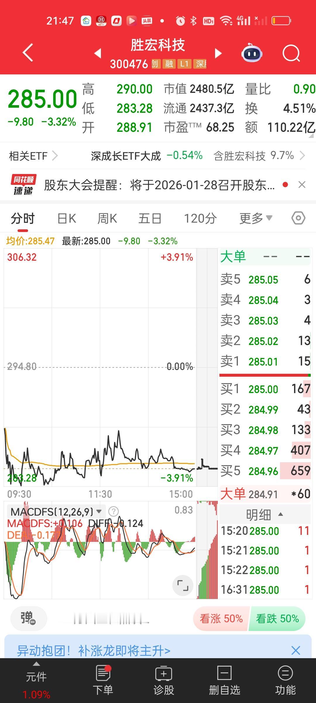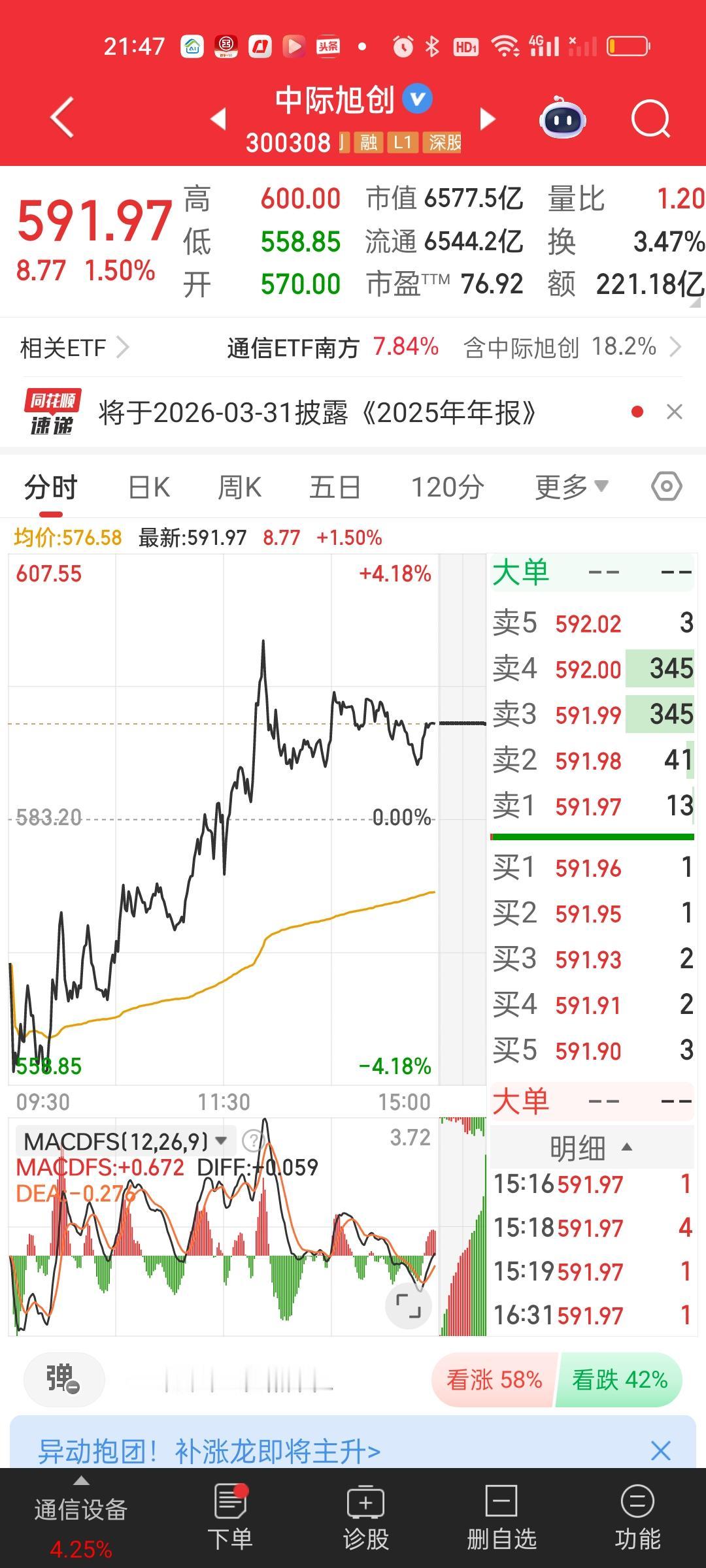 CPO板块可能没有那么快迎来困境反转,主要原因是里面的核心个股依旧没有止跌企稳。这里最低要站上5日线吧,但看核心个股今天收盘的位置都还没有达到这个最低要求。所以我觉得当前加仓不要加太急,等走势慢慢反转再出手也不迟。要多一点耐心!