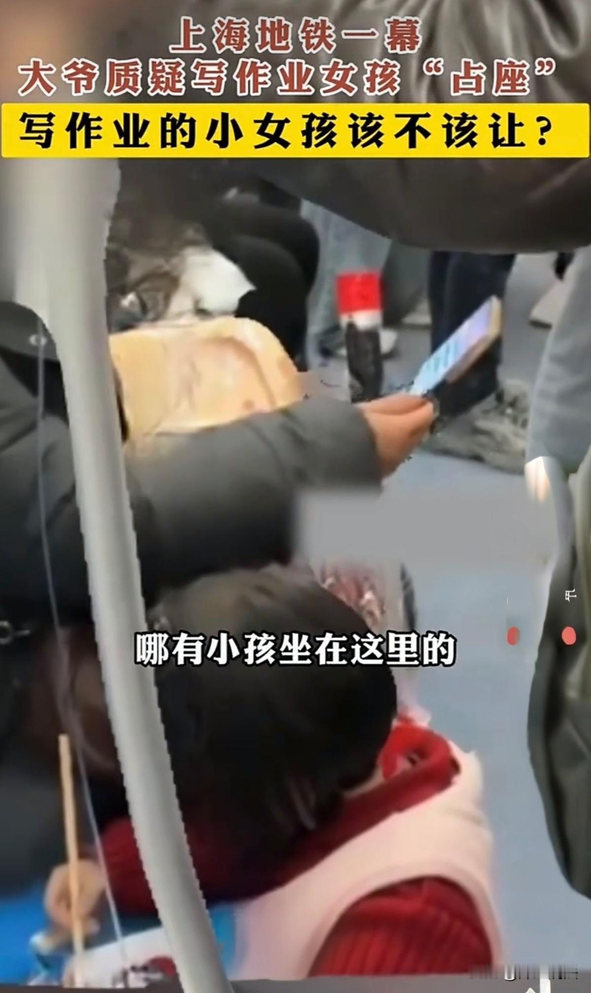 上海地铁,小女孩因想写作业,所以跪下趴在座椅上写作业,妈妈坐在一旁陪同,谁料男子进入地铁上却认为小女孩是占座要求小女孩必须让座,认为小女孩应该被抱在身上,不应该占用一个单独的座位,与家长争执无果后出言讽刺:你这样教育能教育成什么样? 尊老爱幼作为中华民族传统的美德,从古至今流传下来,可发展到现在,却渐渐有些失去它本身的面貌。 生活中礼貌让座本身是作为一个自觉的行为,可在有些人眼里却变成了强制行为,难道老人一定要让座?年轻人,不让座就是不道德? 近期,上海地铁内发生的一件事引起了公众热议。 女孩和妈妈一同乘坐地铁,小女孩乖乖的坐在妈妈旁边,安安静静的等待着地铁到站。 可是过了一会儿,小女孩却突然想起来自己的作业还有些没做完,看着呼啸而过的地铁以及遥遥无期的站点。 小女孩轻轻拉了拉妈妈的袖子,告诉妈妈她有点无聊,想在这写会儿作业。 妈妈环顾了一下周围的环境,又看了看孩子天真无邪的面庞,轻轻摸了摸孩子的脸蛋,告诉她那就在自己的座位上写吧。 小女孩跳下座位,想了想她选择跪在地上,然后把作业铺在座位上开始专心致志的写作业。 周遭环境嘈杂,但大家看着小女孩认真的样子,都不由自主的放低了声音。 地铁又到了一站,周遭的人换了一茬又一茬,突然,小女孩旁边突然站了一个年级稍大的男子。 男子站定后,看了看女孩,又轻咳了一下,孩子妈妈抬头看了看男子,但也只是看了一下,她以为没什么事就又低头开始干自己的事情了。 可我不想,没过多久,男子就开口让小女孩让座,并且再三强调,座位是坐的,不是用来玩的。 小女孩有些茫然的抬头看着男子,她小小的脑袋里还没有那么多的对与错,但她知道可能面前的叔叔是在指责她。 于是小女孩无措的看着妈妈,孩子妈妈看着男子,好声好气的开始解释,说孩子一开始就是坐在座位上的,只是后来因为想要写字才开始趴在那里写字的。 可男子不听,一直在说,这是坐的,不是玩的,她不懂你也不懂嘛。 女孩妈妈随即神色严厉的对女孩说,“坐上来。”女孩低声说着她想写字。 还没等女孩妈妈的进一步解释,男子的言语攻击又开始了,“写什么字,你这样教有什么用啊?” 女孩妈妈也有点被激怒,随即回答:“你教的好你去教嘛。我小孩坐在这里是坐了你的座位是吧。” 男子随即又立马转移到了座位这个问题上,大爷表示,哪有小孩子可以独占一个座位的,都是大人抱着的。 并且还指责孩子妈妈,你这么大人了,都没有脑子的嘛,还纵容孩子这样的行为。 孩子妈妈称,宝宝可以抱在身上,但自己家的小女孩已经比较大了,可以自己坐一个座位啊。 事情发生后,大家各执一词,有人认为地铁上确实不是写作业的地方,容易绊倒也很不方便。 但也有人表示,孩子只是想写作业,并没有打扰到其他人,就算她不应该写作业,让座也不是她必须要做的事情。 地铁作为一种公共交通工具,普通座位,即非老弱病残幼专座的的使用权属于合理购票的乘客。 购票乘客对所占座位享有合法的使用权,让座属于道德层面上的善意行为,而并非法定义务,任何人无权强制要求。 本案中,小女孩可能因身高未达到购票要求,所以由其监护人购票一同进入地铁,在明文规定下,二人均属于合理购票人员。 而在事发地铁中,可以看到,小女孩所坐座位并非老弱病残幼专座,视频中肉眼可见,男子也并不属于老弱病残等特殊人群,因此男子无权要求女孩让座。 (以上报道来源于环球网。)