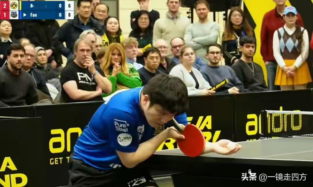 德德国乒乓球甲级联赛第12轮,樊振东效力的萨尔布吕肯对阵劲旅多特蒙德,樊振东两次出场,先后3-0完胜厄瓜多尔选手阿尔贝托和瑞典名将卡尔森,再次独得两分,可惜他的队友弗朗西斯卡和爱德华·约内斯库在单双打丢了三分,没能再凑上一分,最终队伍还是2-3失利。波尔又来到现场为樊振东加油助威。