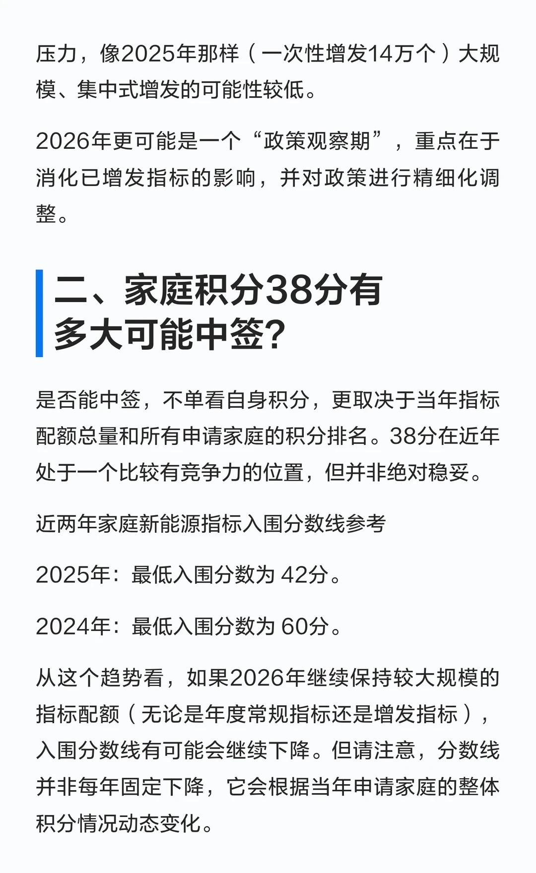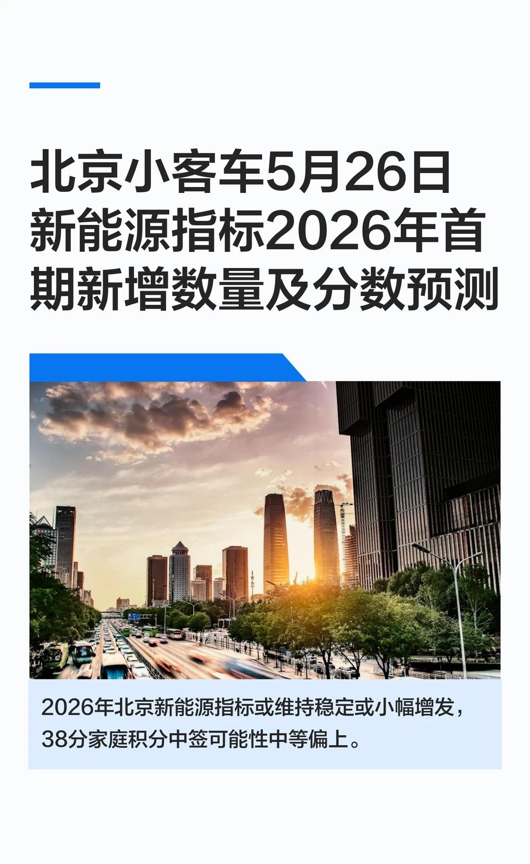北京小客车5月26日新能源指标2026年首期新 2026年北京新能源指标可能维持稳定或小幅增发,家庭积分38分具备一定竞争力,但中签仍取决于当年指标总量和申请家庭整体积分排名。建议密切关注官方信息,坚持申请并优化家庭积分。2025怪不一样 新能源汽车 摇号 小客车指标 政策 项目申报 车牌 绿色能源转型 高新技术企业认定