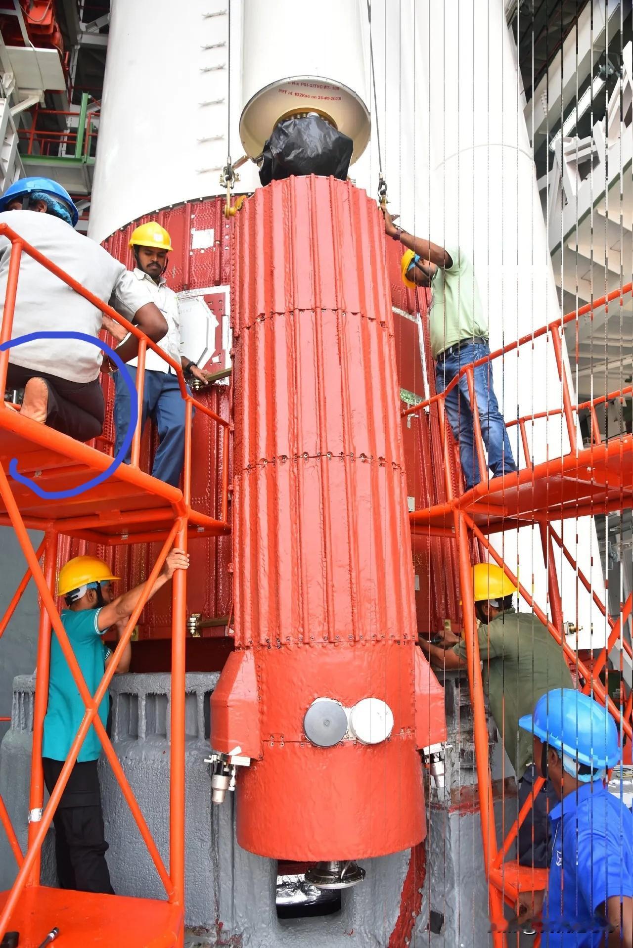 在印度那边造火箭穿鞋犯法吗?大家看看第1张图片,印度工人制造火箭的时候,居然光着脚丫子。 他也不怕铁屑毛刺儿扎破他的脚。 您再看看第2张图。 这就是印度人的火箭,就这个工艺,还说什么好呢? 这完全就是把咖喱给糊了上去啊! 就这种粗制滥造的工艺,还妄图想成为一个航天大国?