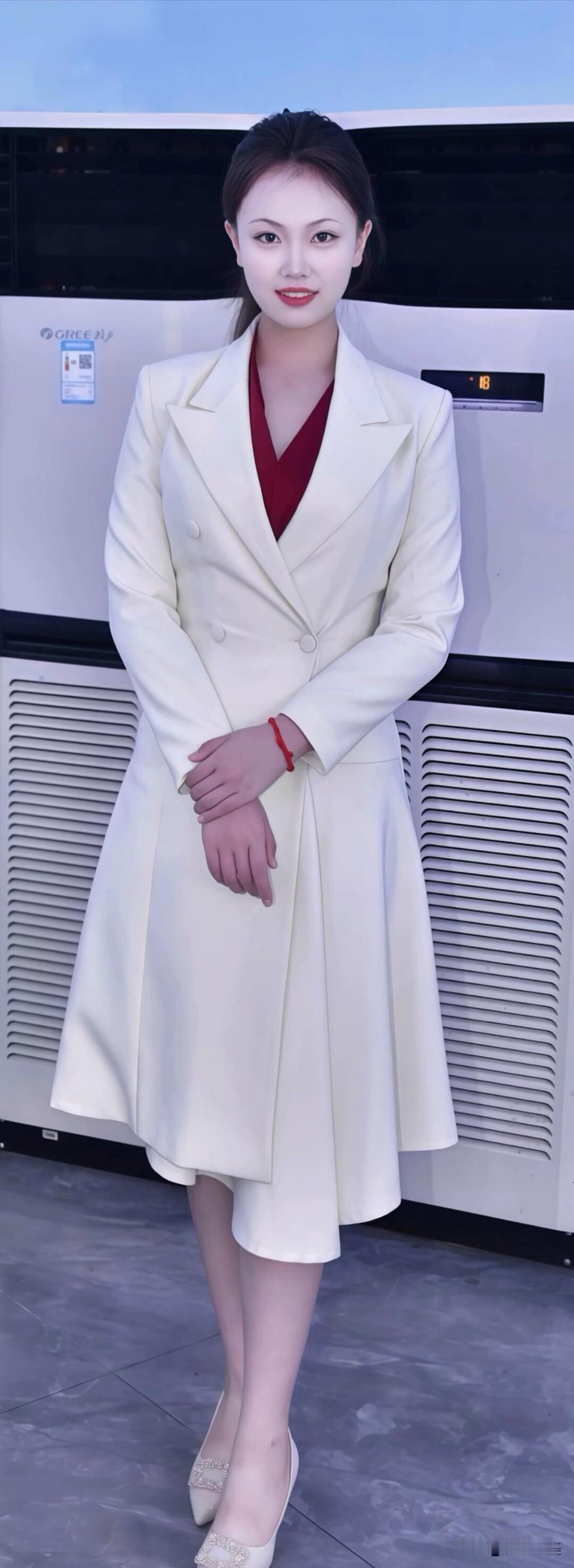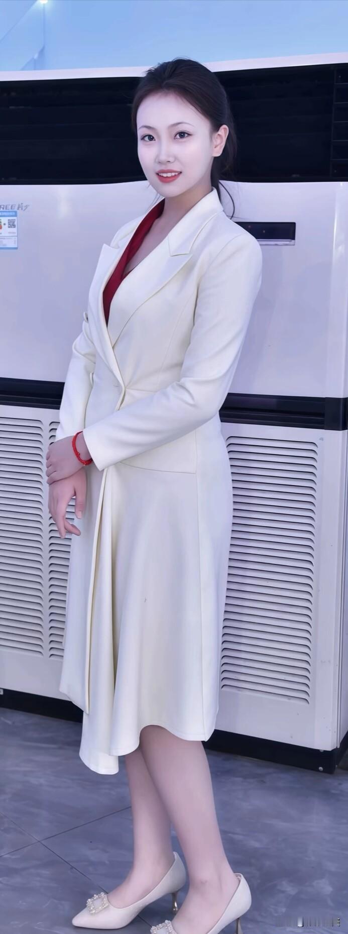 米白色西装裙也太显气质了吧!内搭酒红色打底,简约又大方,日常穿或者正式场合都合适~