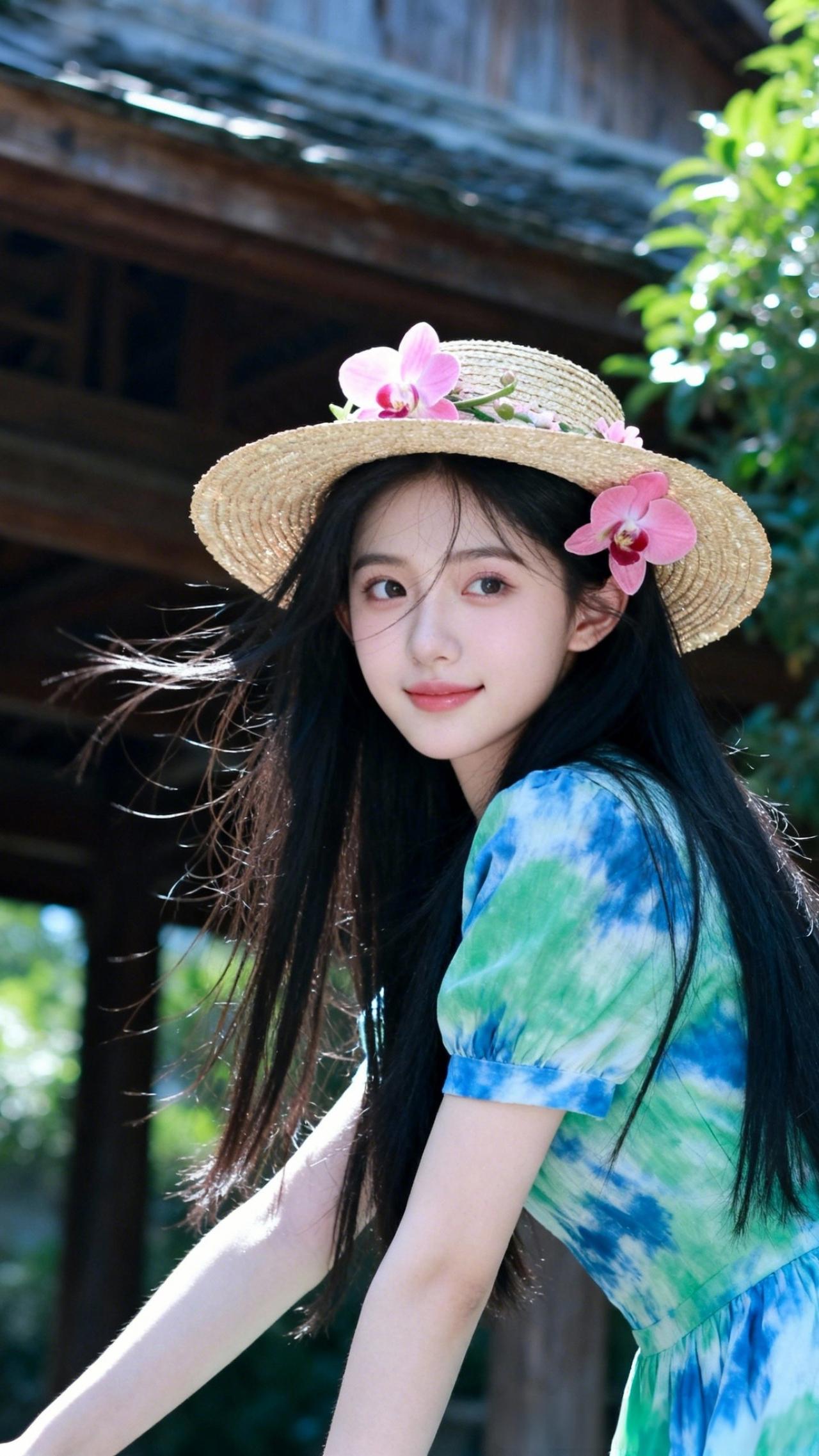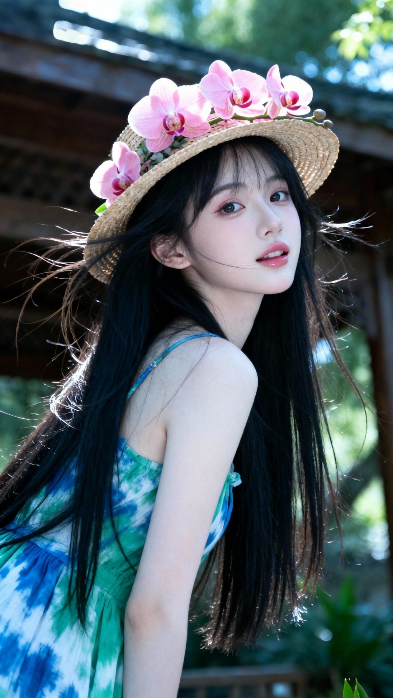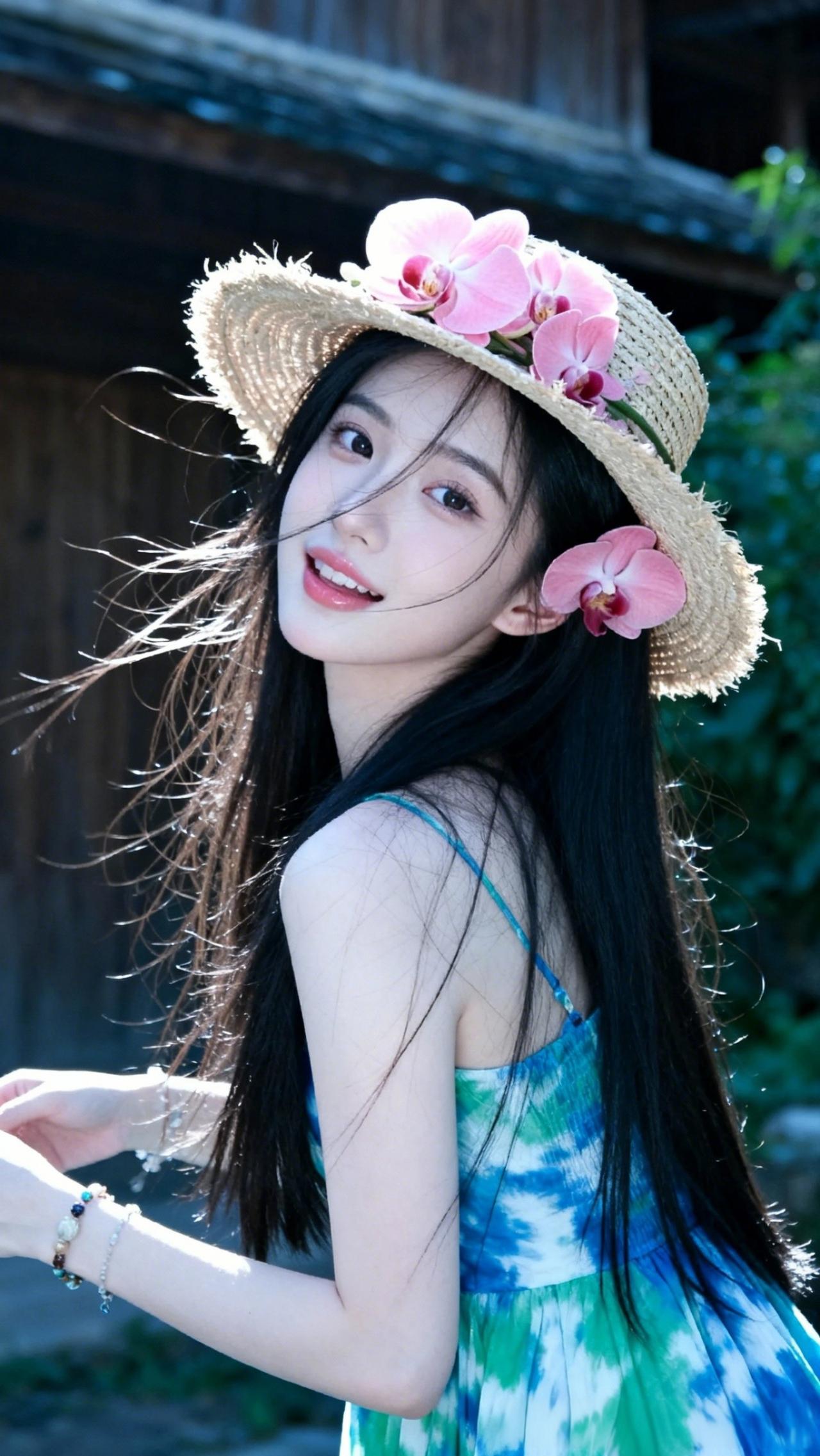 夏日清新少女,草帽与花海相伴,笑靥如花🌸🌞草帽清纯女孩 花海少女照