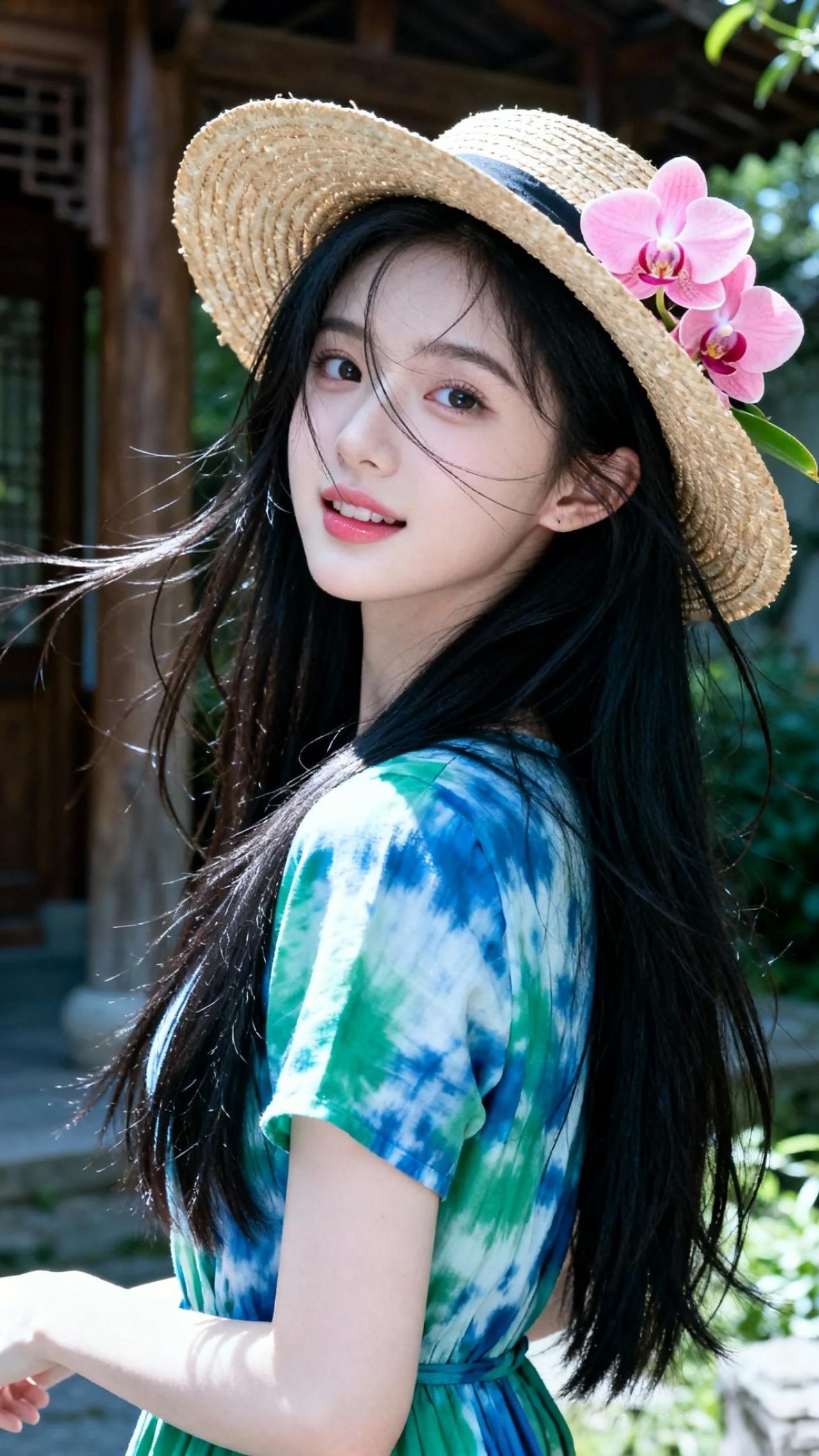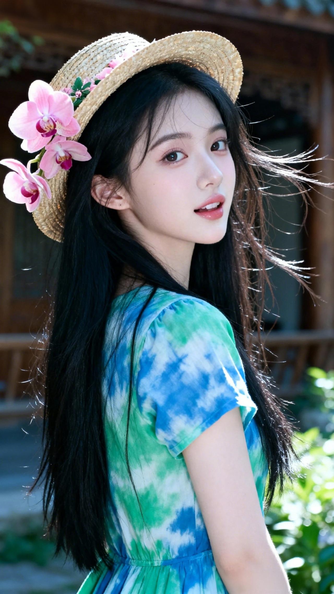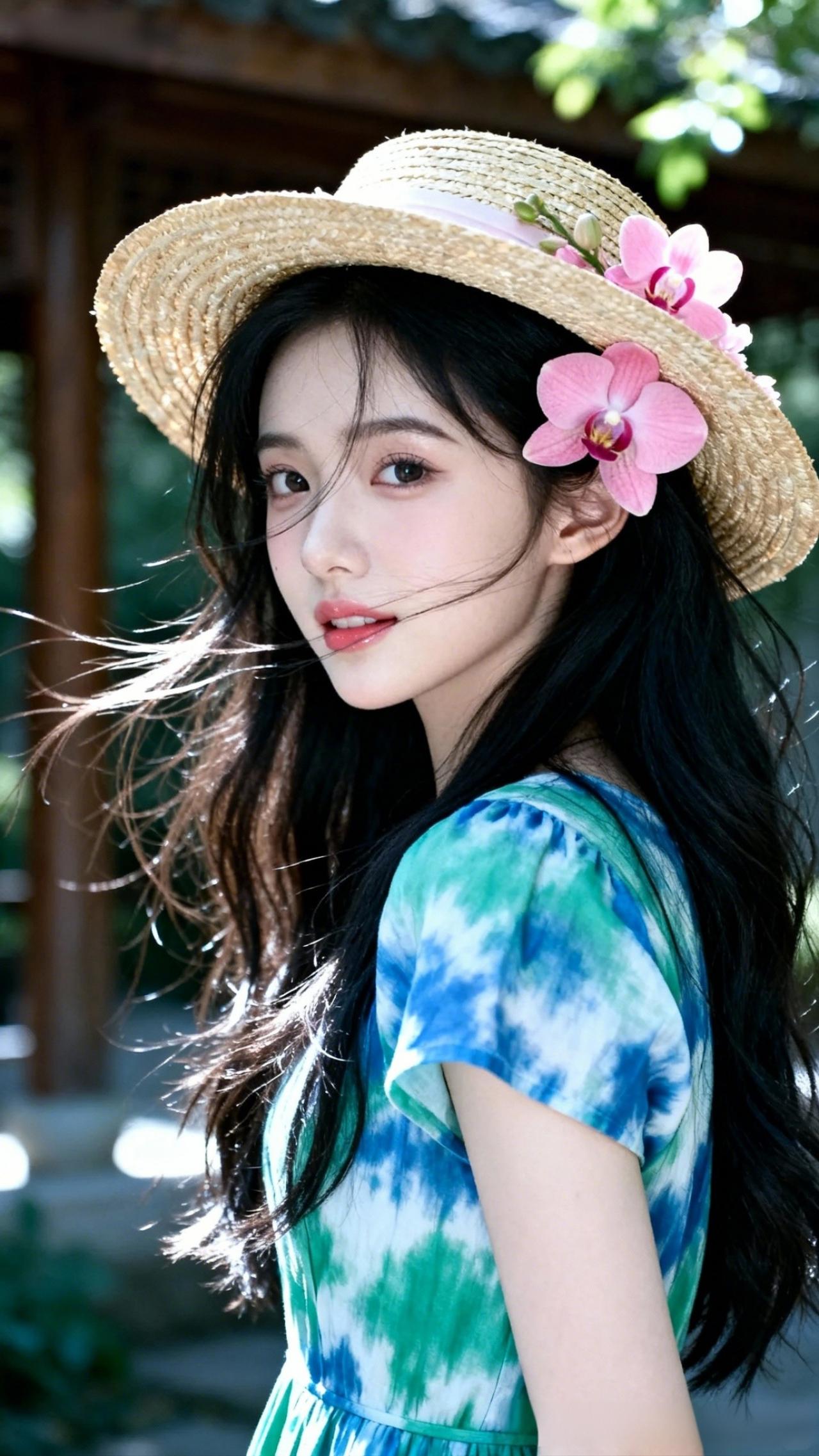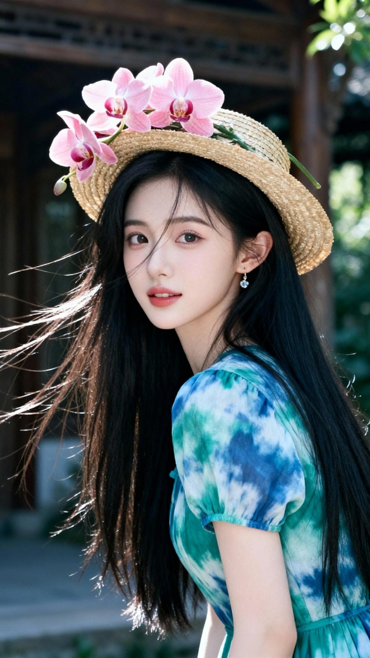 夏日清新少女,草帽与花海相伴,笑靥如花🌸🌞草帽清纯女孩 花海少女照